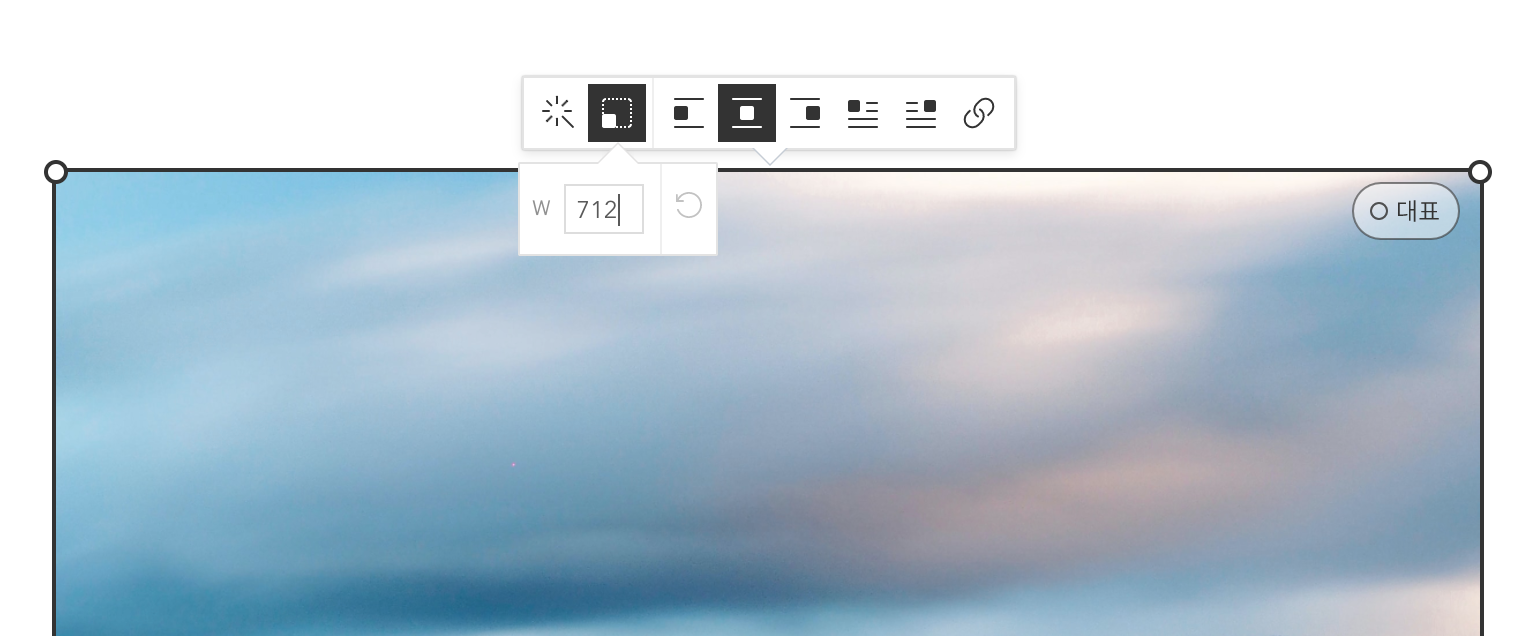 이미지를 클릭하면 펼쳐지는 부가메뉴에서 이미지 사이즈를 직접 입력할 수 있습니다.