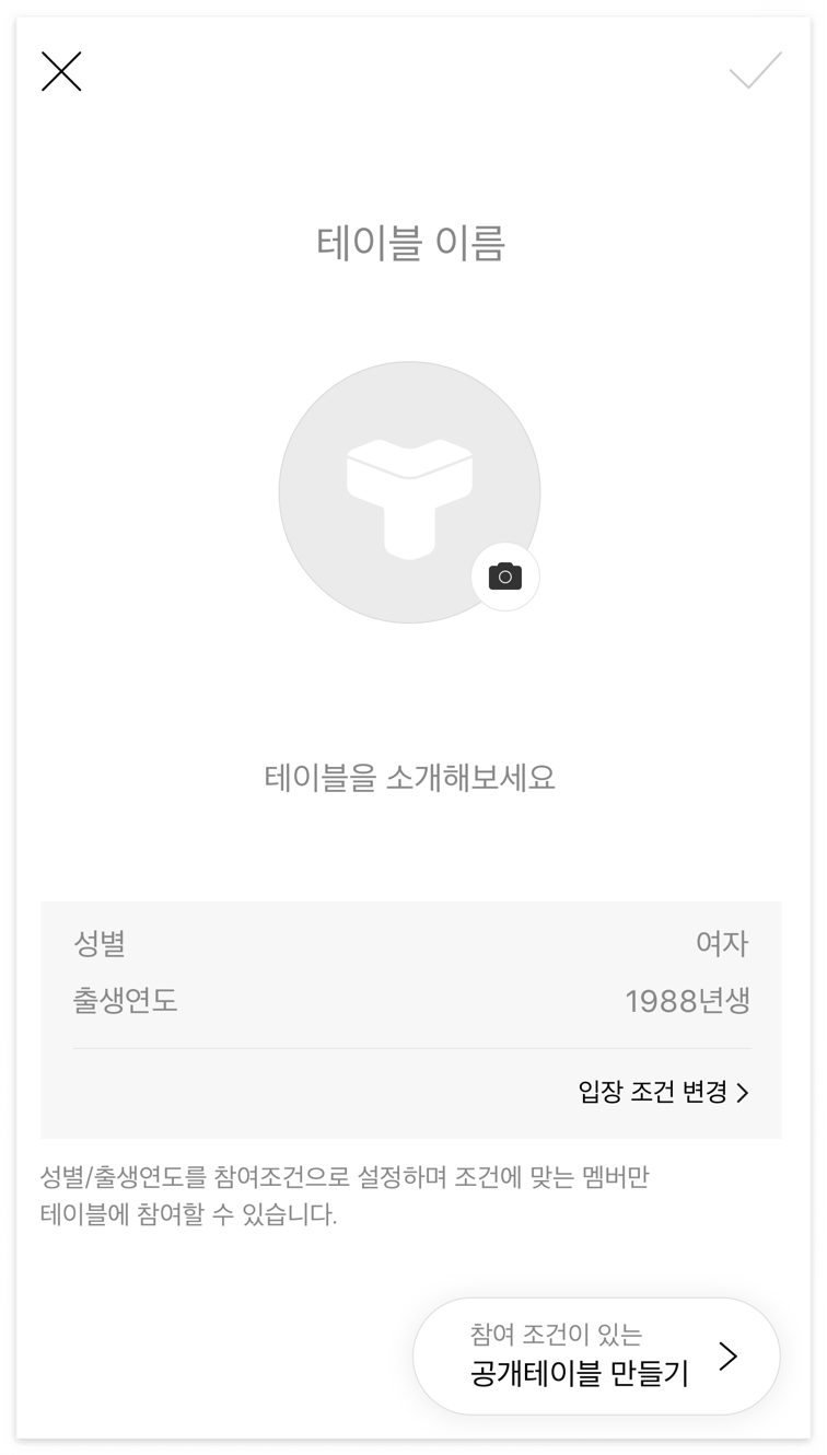인증테이블 개설시 설정한 참여조건은 변경할 수 없으니 신중하게 설정해주세요.