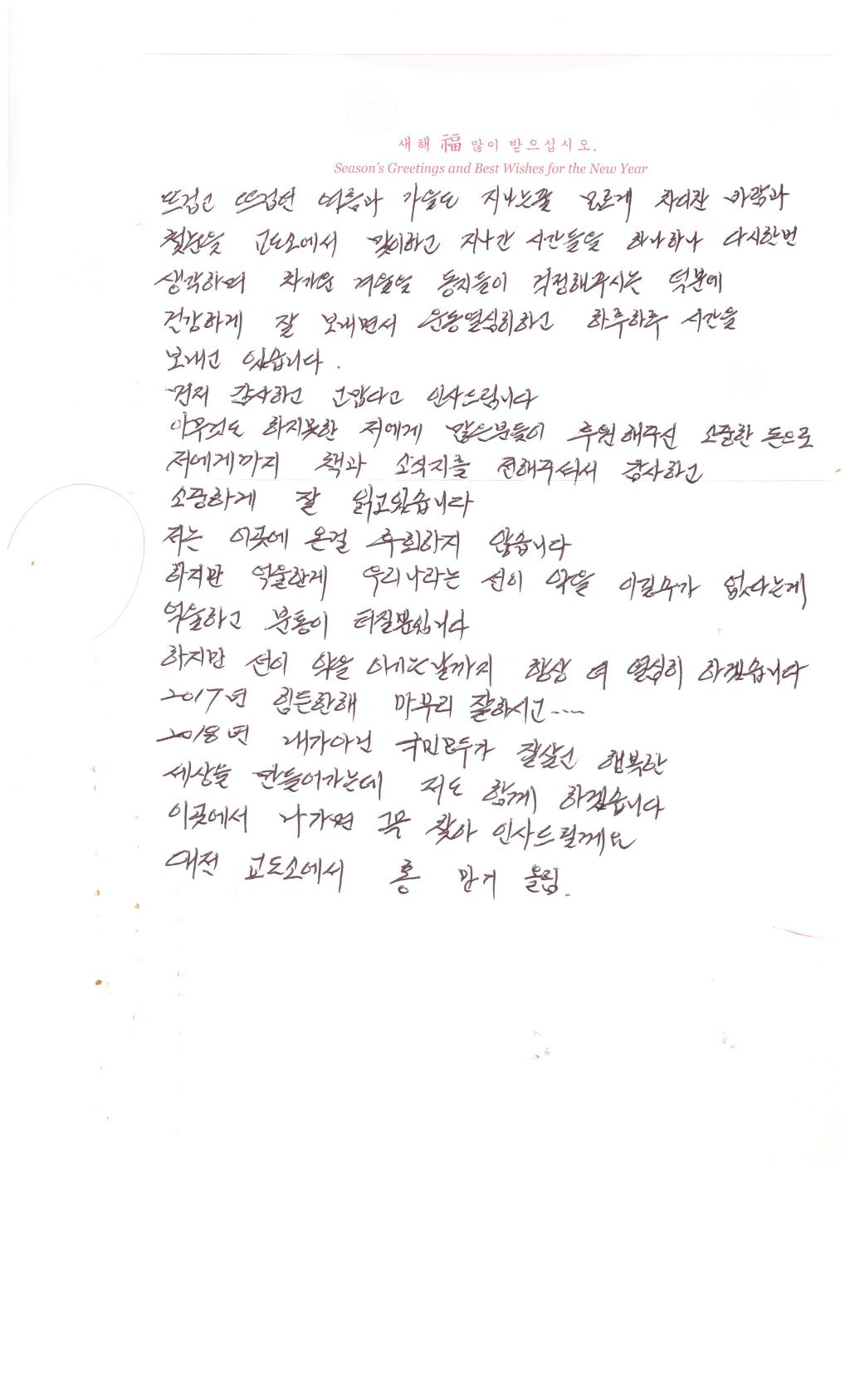 대전교도소 홍만기님 연하장 작성자구속노동자후원회|작성시간18.04.03|조회수25 목록 댓글 0 글자크기 작게가 글자크기 크게가 다음검색 현재 게시글 추가 기능 열기 북마크 신고 센터로 신고 댓글 댓글 0 댓글쓰기 답글쓰기 댓글 리스트