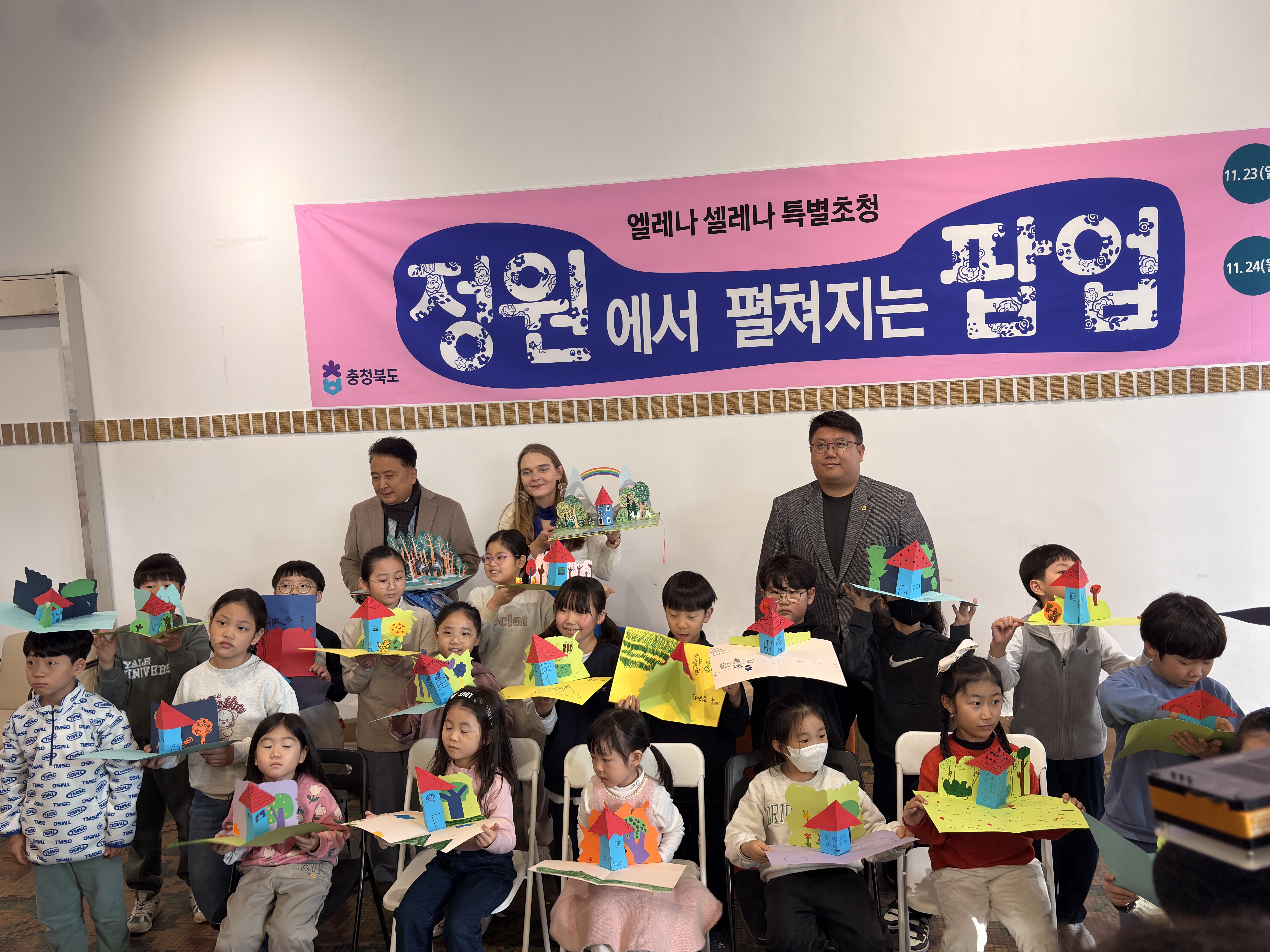 충북도가 준비 중인 "그림책정원1937" 개관 전 사전행사로 프랑스 팝업북 작가 엘레나 셀레나를 초청해 다양한 행사를 열었는데요. 이틀에 걸쳐 어린이 워크숍, 전문가 토론회, 전문가 워크숍 등의 일정으로 진행되었습니다. 숲속지기는 행사 준비와 진행을 맡아 분주한 나날을 보냈는데요. 간단히 스케치해봅니다.