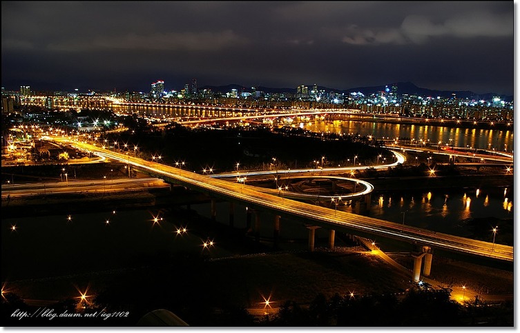 쪽의 현대아파트를 지나서 포인트를 잡으시고 슬로우셔터로 촬영을 하시면 서강대교의 뼈대가 확실하게 잡힙니다.