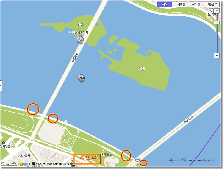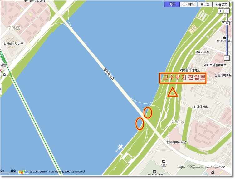고수부지 진입로(약도 참고하시길 바랍니다^^)