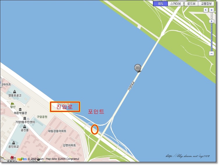 첫번째 포인트는.. 올림픽대로 성산대교 지나서입니다.