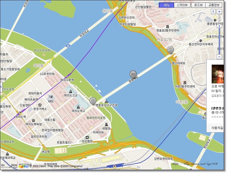 또 다른 포인트는 길 건너편 여의나루역 부근입니다.