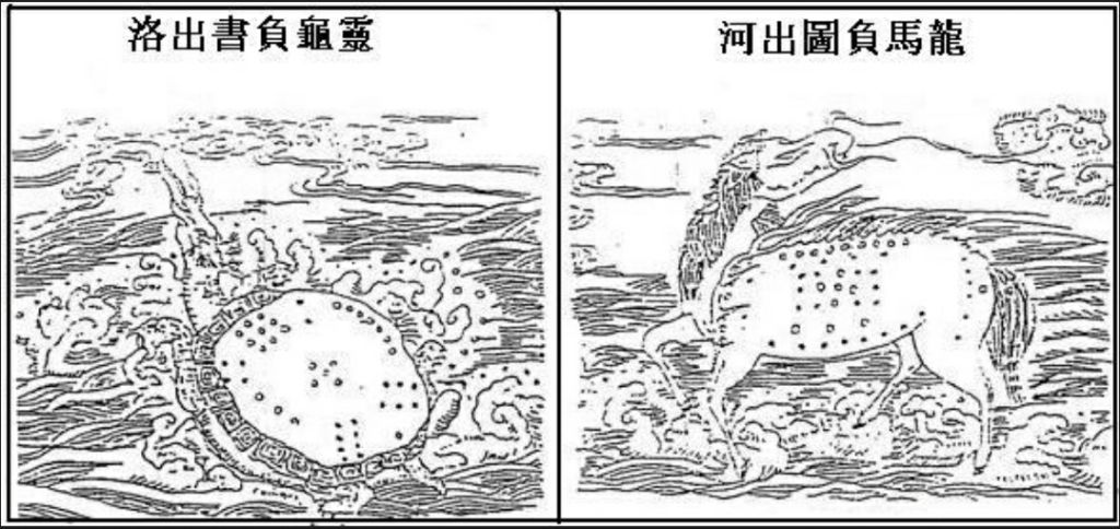 상서(尙書)=서경에 따르면, 복희씨가 다스리고 있을 때 하수(河)에 용마가 나타났으니 그 무늬를 따라 하도(河圖)를 만들었다고 한다.