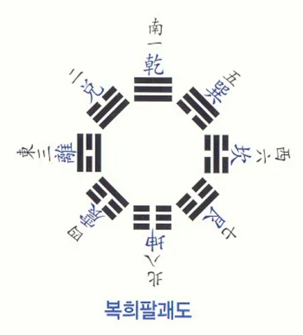 복희씨가 황하에서 나온 용마의 등에 그려진 무늬(하도)를 보고 우주의 이치를 깨달아 8괘를 그렸다고 전해집니다.