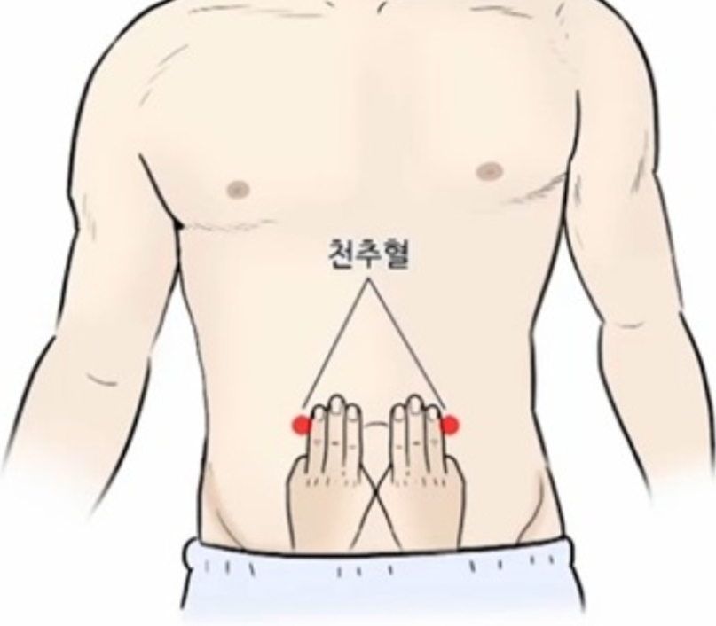 천추혈(天樞穴)은 배꼽 양 옆에 위치한 혈자리로, 배꼽에서 좌우로 손가락 두세 마디 정도 떨어진 곳에 위치합니다. 주로 소화 기관, 특히 대장과 관련된 질환에 효과가 있다고 알려져 있으며, 변비나 설사 증상 완화에 도움이 될 수 있다
