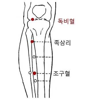 ● 독비혈(犢鼻穴) : 송아지코 혈
