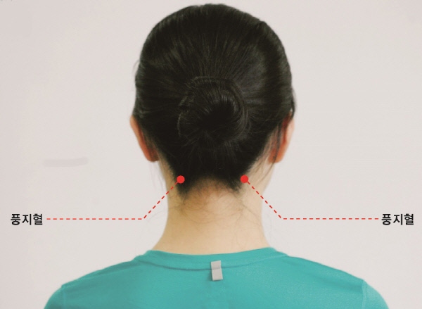 ④︎두 손 떼어 뒷목 풍지혈,천주혈을 한 번씩 지압하며 - 대강
