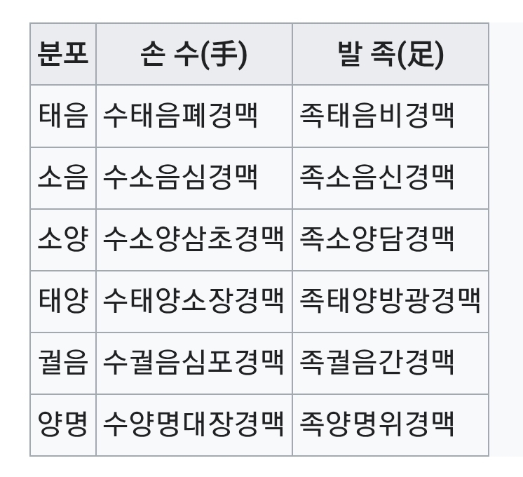인체에 분포되어 있는 십이정경의 하나에 해당하는 경맥.
