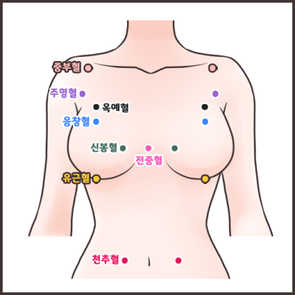 ⑤︎두 손 내려 양 가슴 기호혈, 응창혈을 한번씩 지압하며 - 시