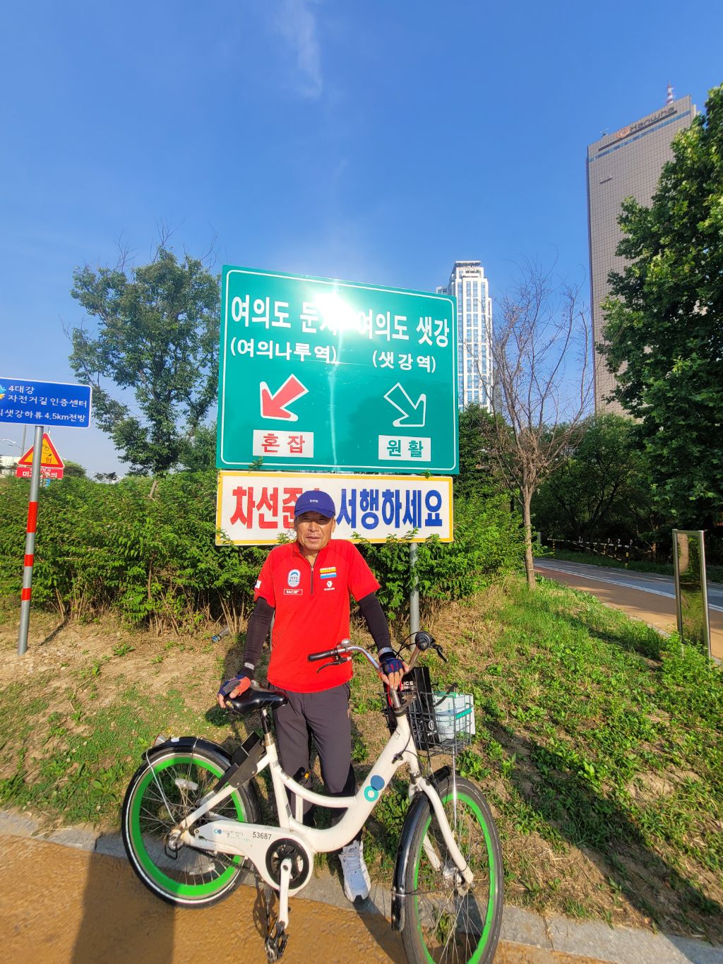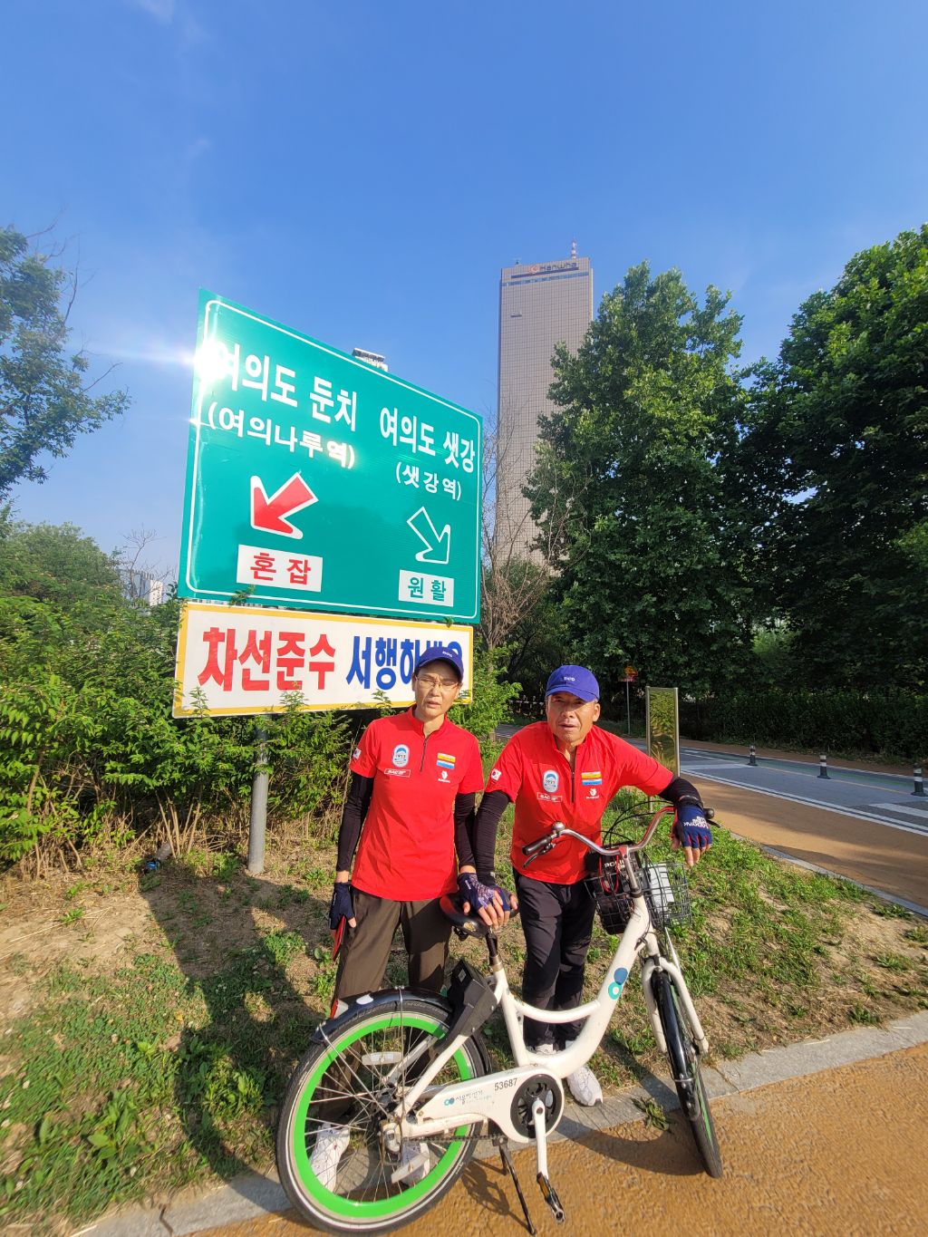 옆지기랑 지인2명과 함께 서울 한강공원 가양대교에서 출발해 성수대교를 지나 올림픽 공원 고맙습니다 조각물 의자까지 약34km 오늘 도런이라는 프로그램에 도전 자전거 투어로 하루를 즐기고 왔네요....