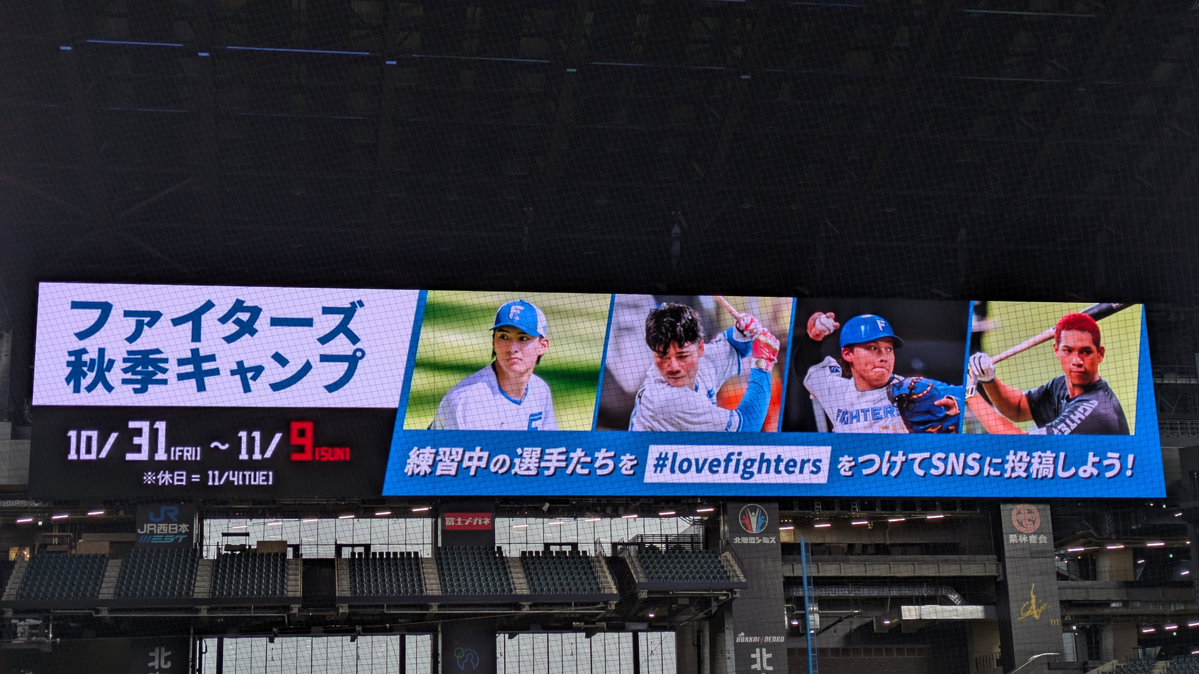 11월 9일 일요일까지 니혼햄파이터즈 연습이 에스콘필드 경기장에 있어서 갔다왔습니다.