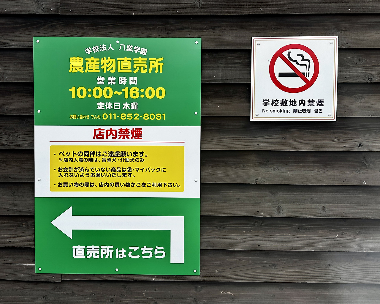 Previous Next 八紘学園農産物直売所では、札幌市内をはじめとする石狩平野で育った野菜や畜産物、卒業生の生産物などを販売しています。 直売所ならではのめずらしい野菜や山菜等も季節に