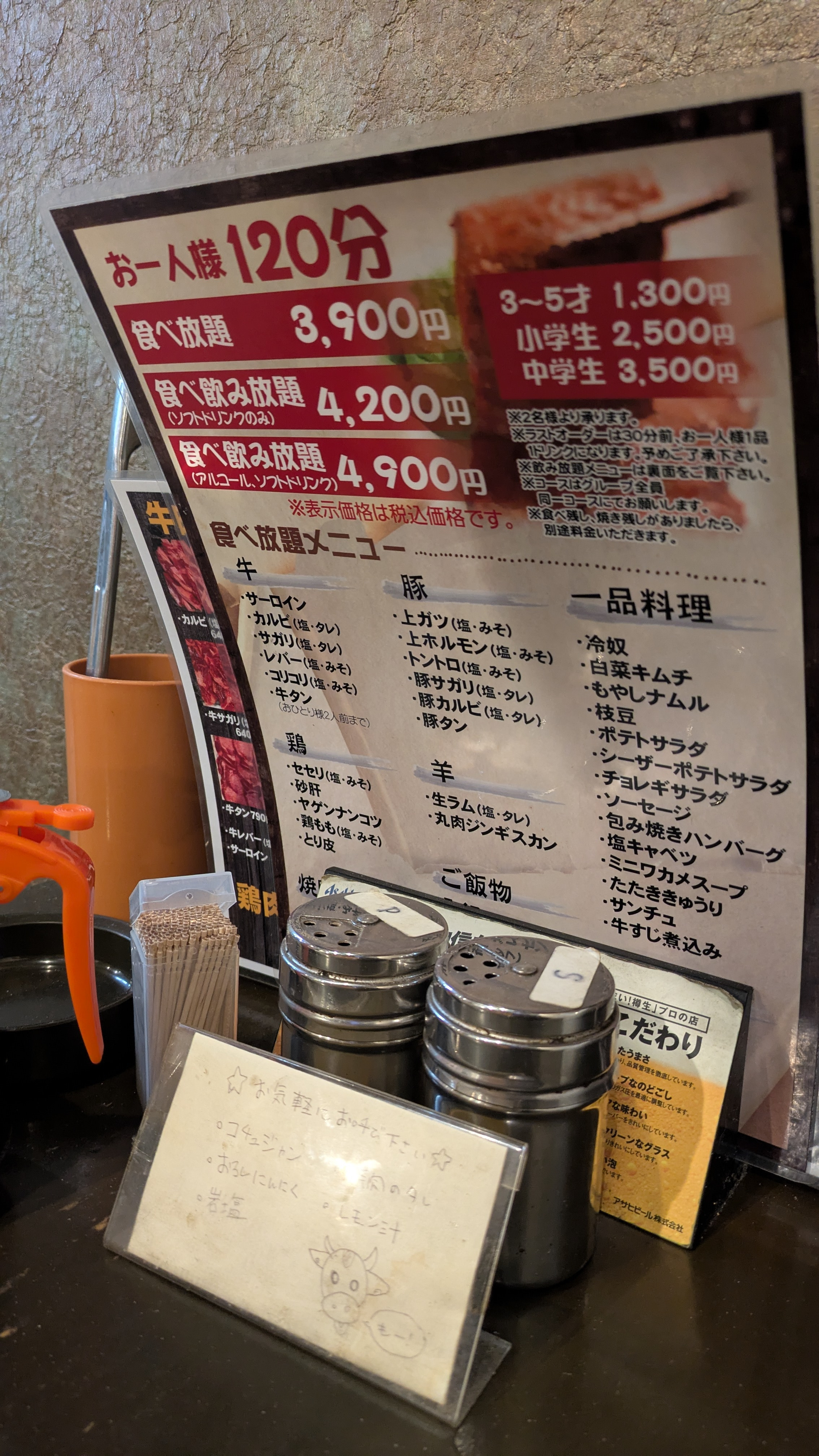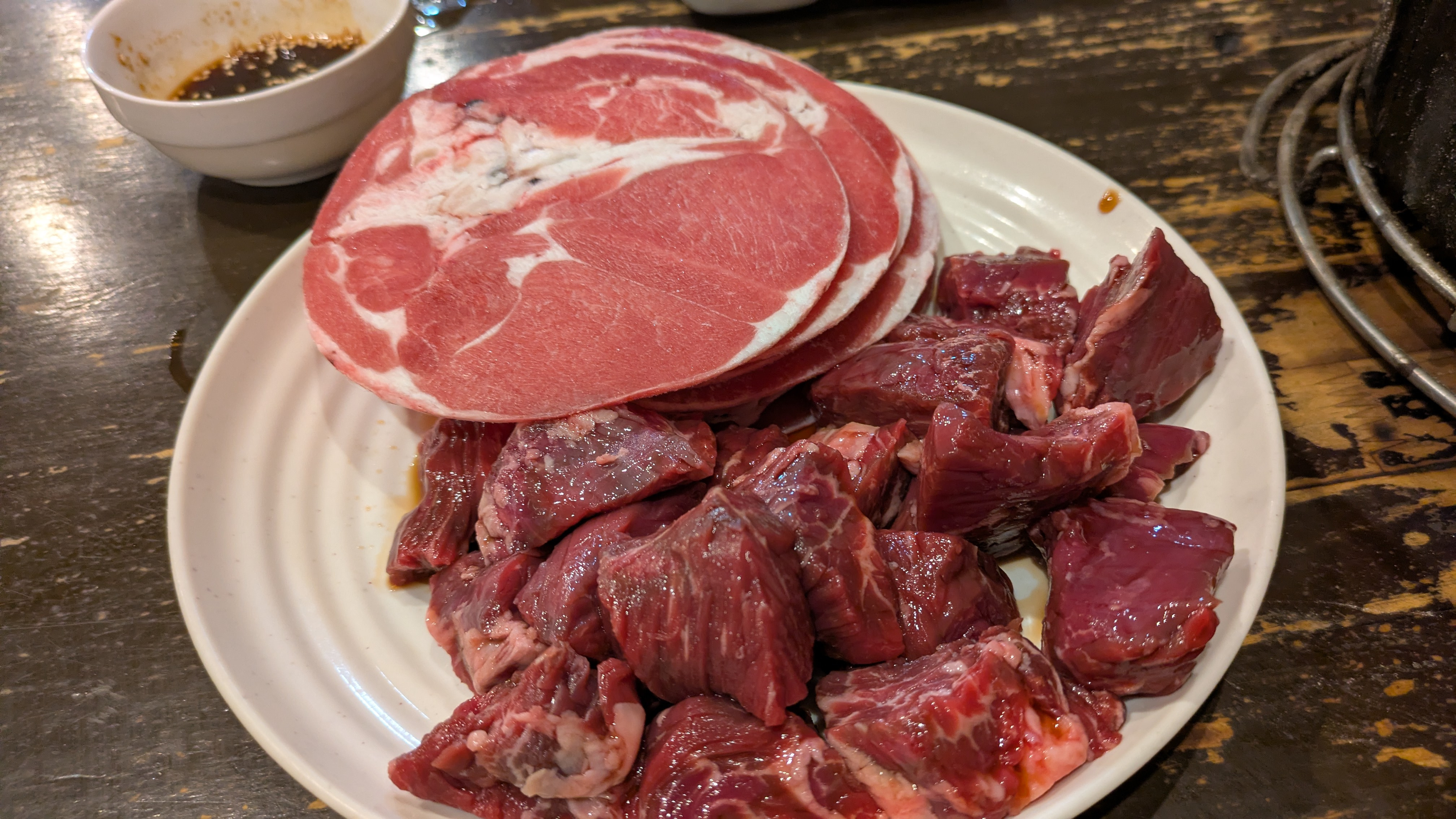 2시간 동안 술과 소고기, 돼지고기, 닭고기, 양고기, 야채, 냉면 기타 등등을 무제한으로 먹을 수 있는 곳입니다.