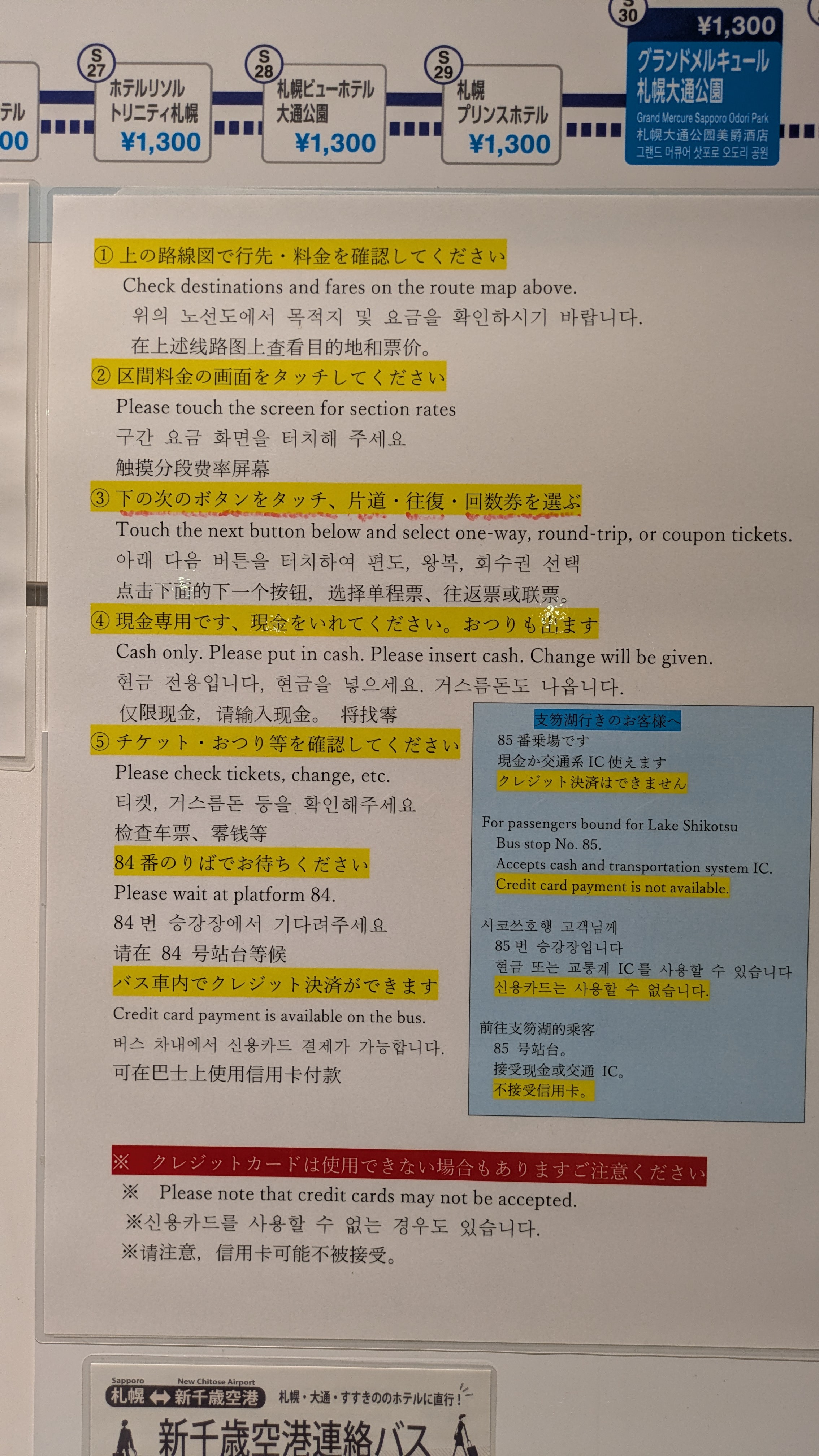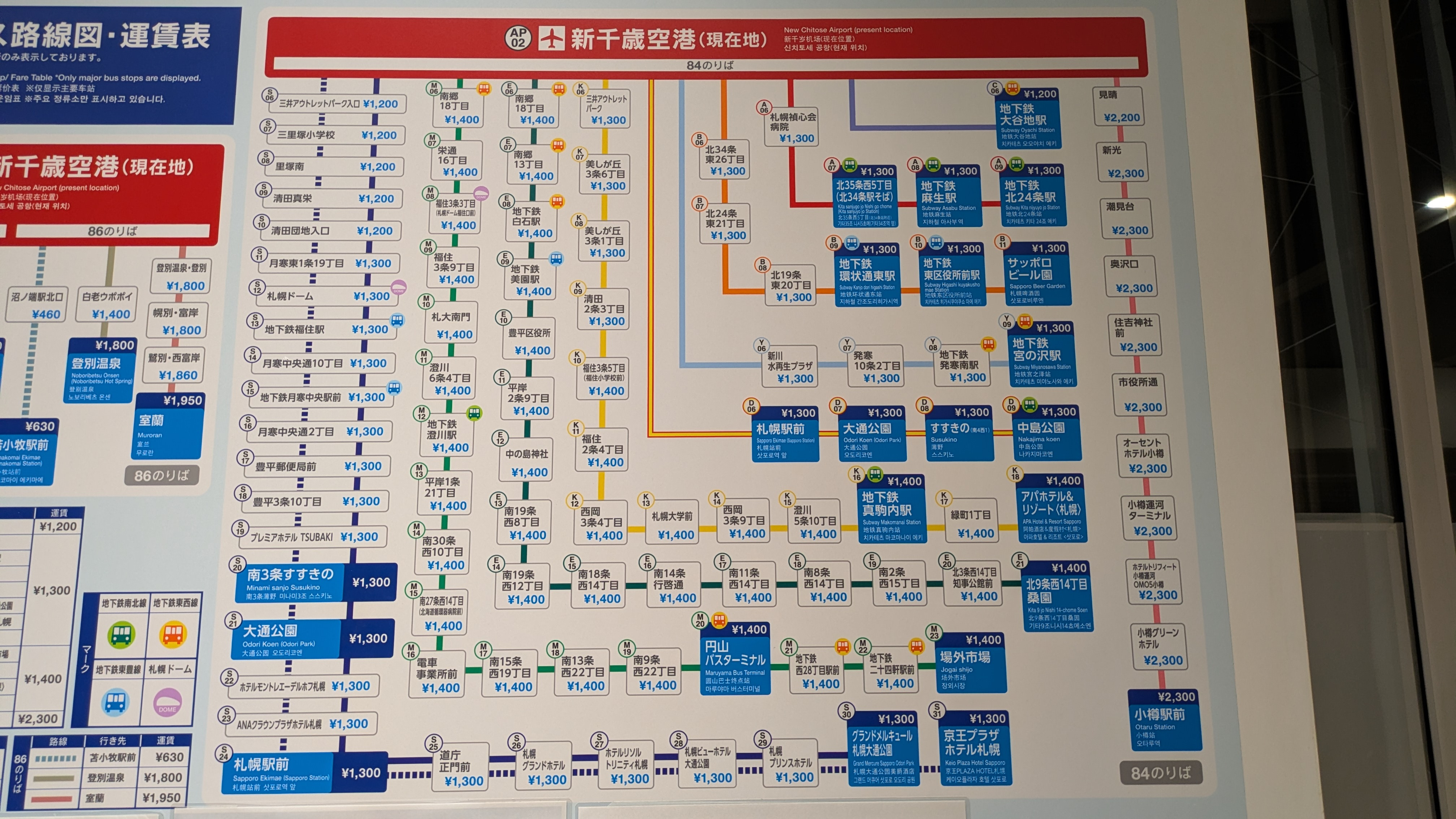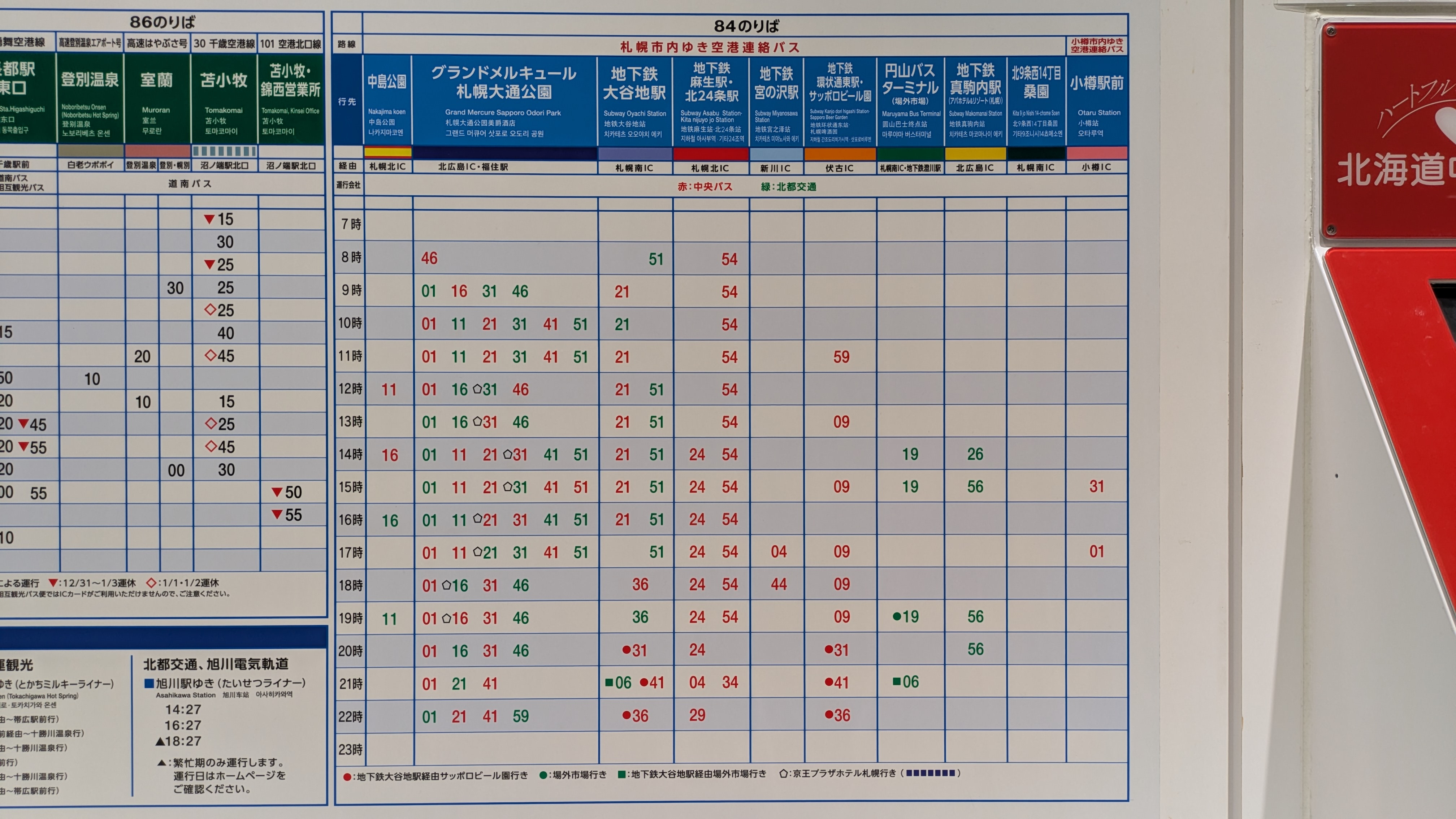 ✔ 삿포로역, 오도리공원, 스스키노, 나카지마코엔역 가시는 분들은 84번에서 버스를 타시면 됩니다.
