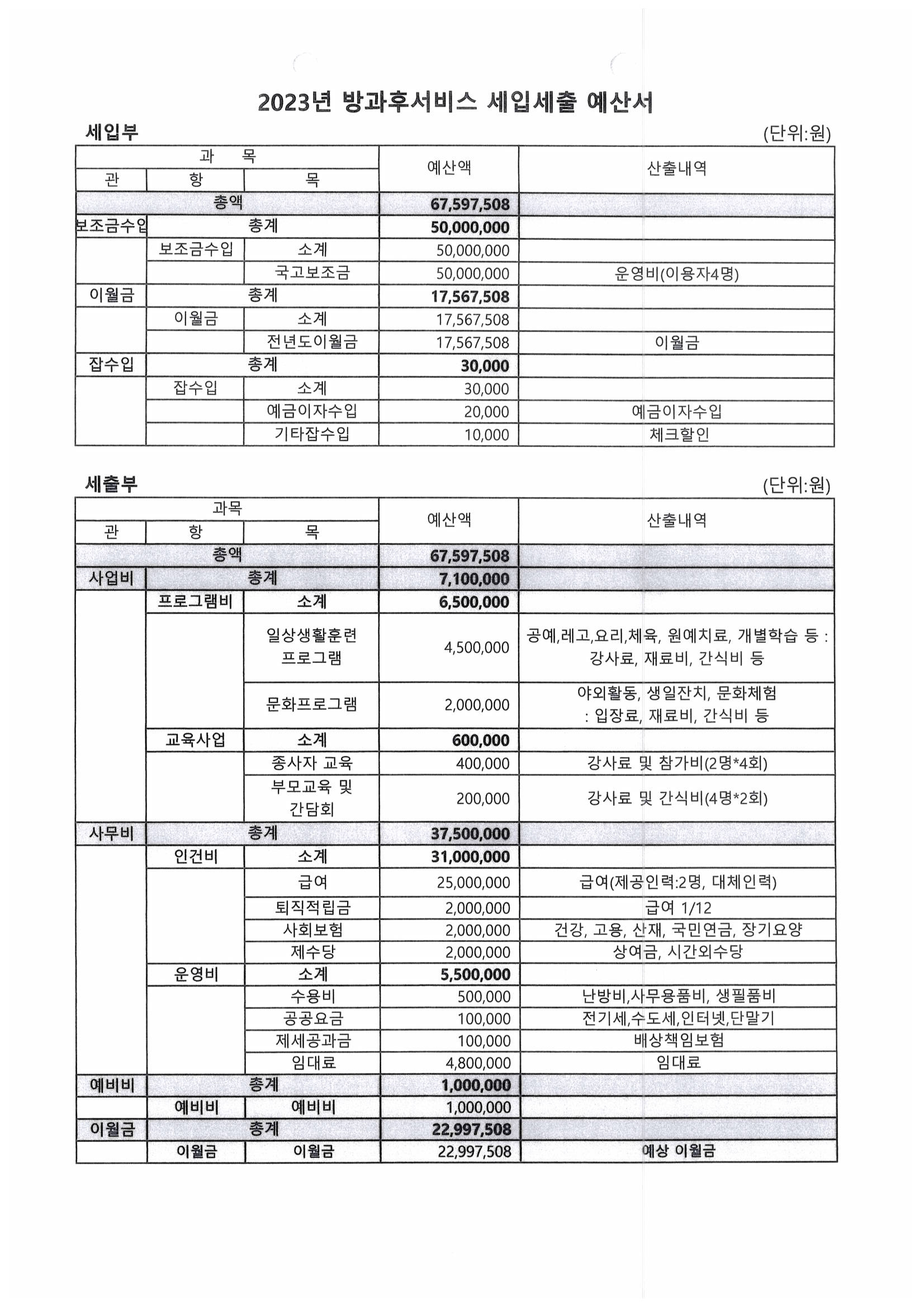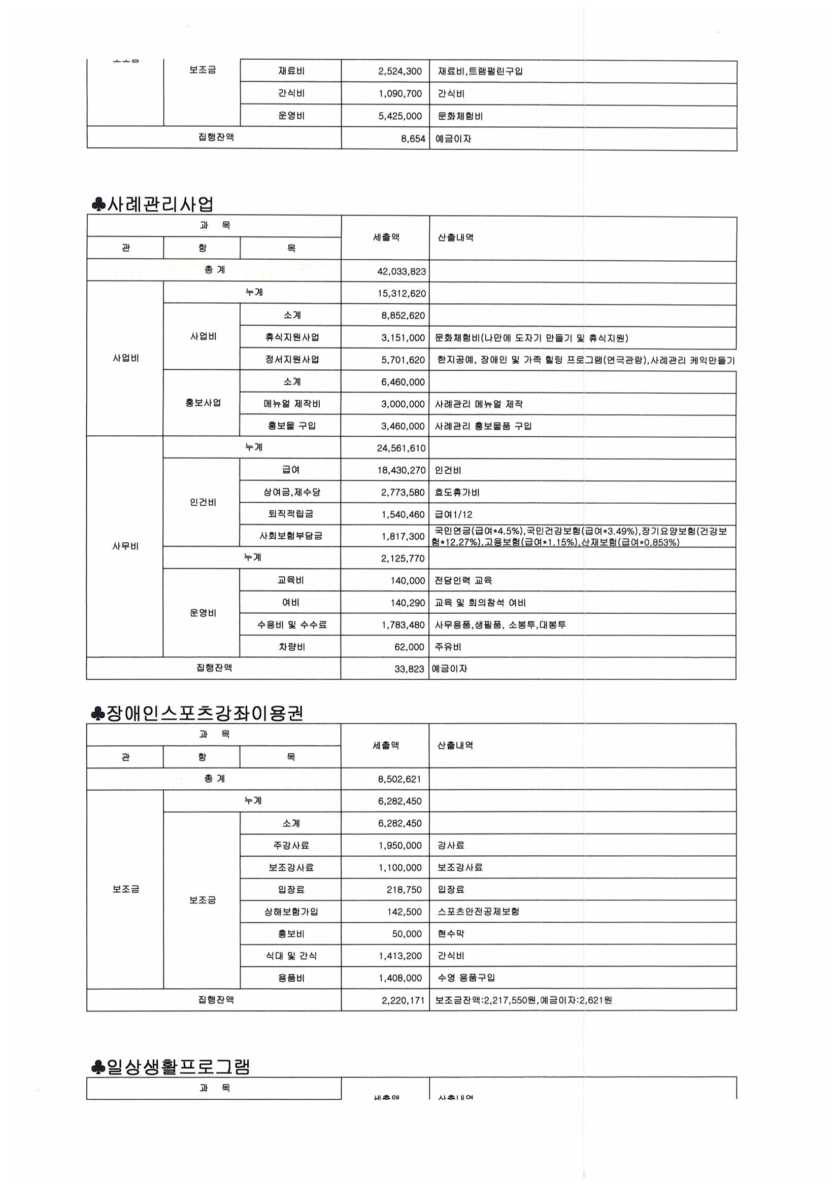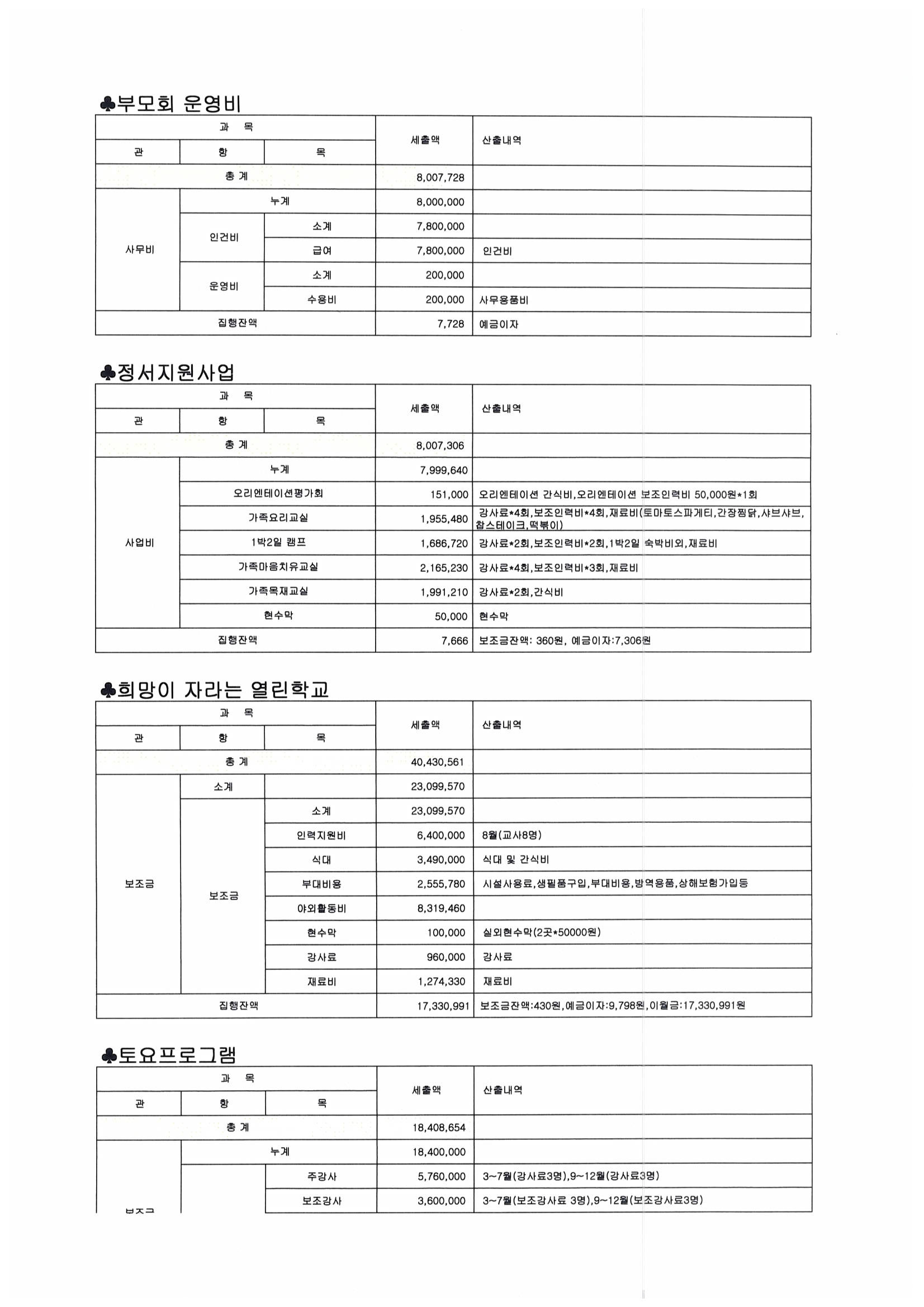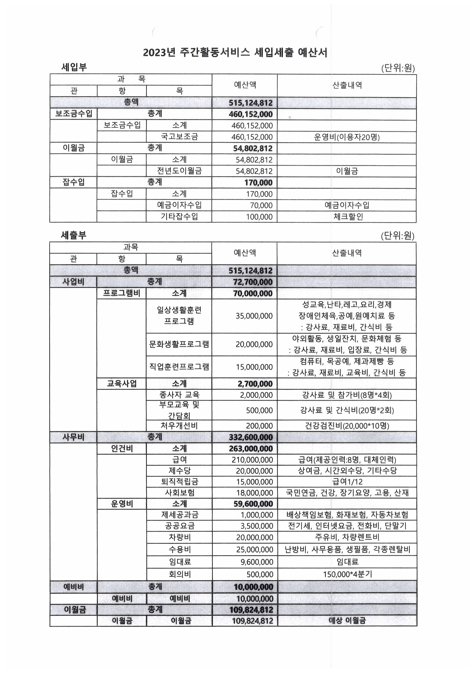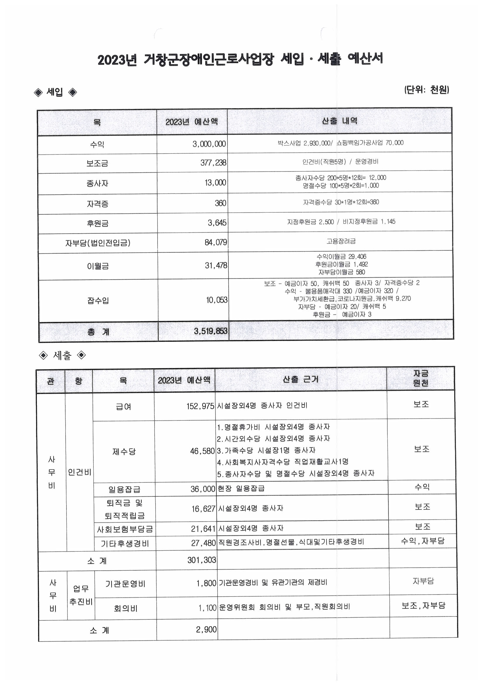 2022년 느티나무장애인부모회 거창군지부 세입·세출 결산서 및 2023년 세입·세출 예산서·예산총칙 작성자느티나무|작성시간25.05.15|조회수50 목록 댓글 0 글자크기 작게가 글자크기 크게가 다음검색 현재 게시글 추가 기능 열기 북마크 공유하기 신고 센터로 신고 댓글 댓글 0 댓글쓰기 답글쓰기 댓글 리스트