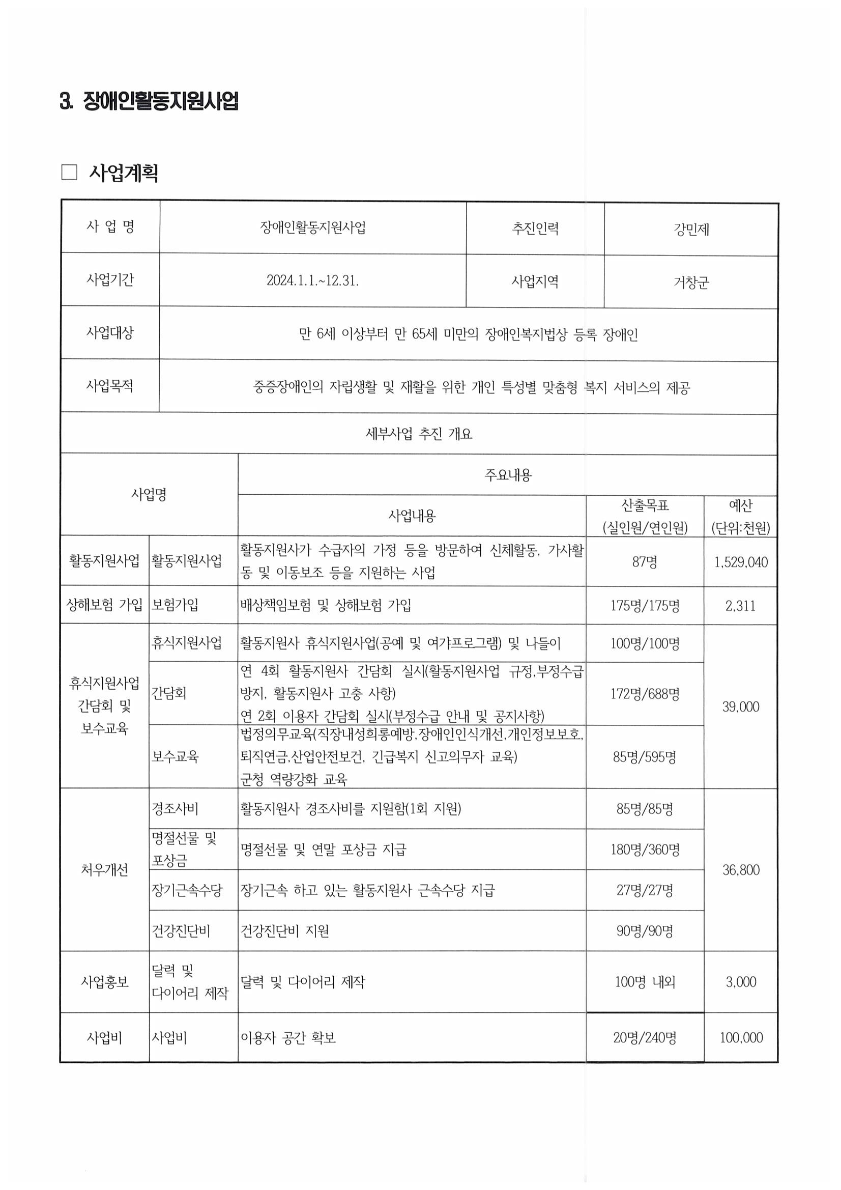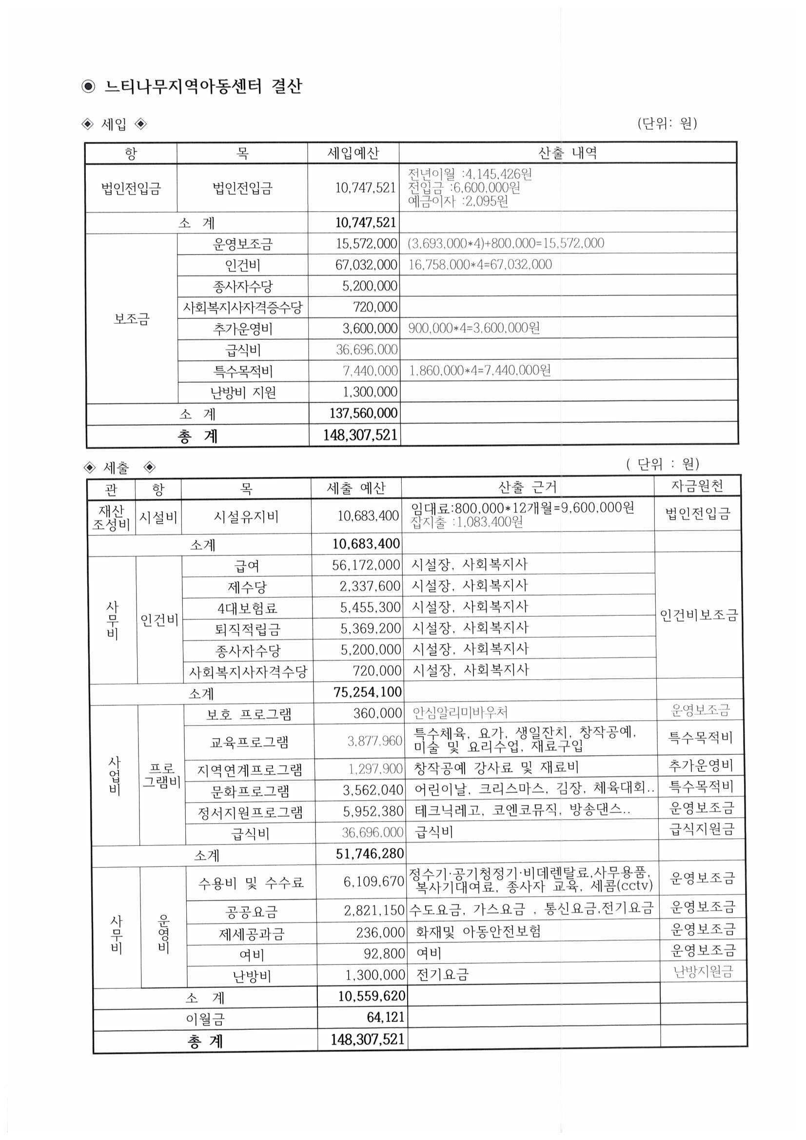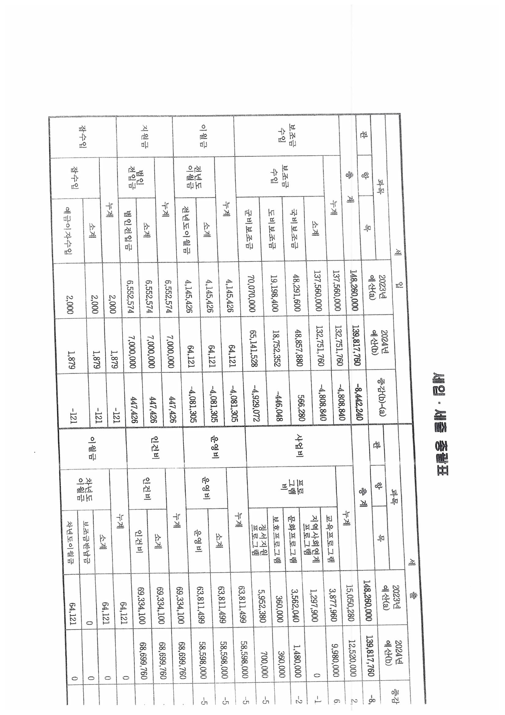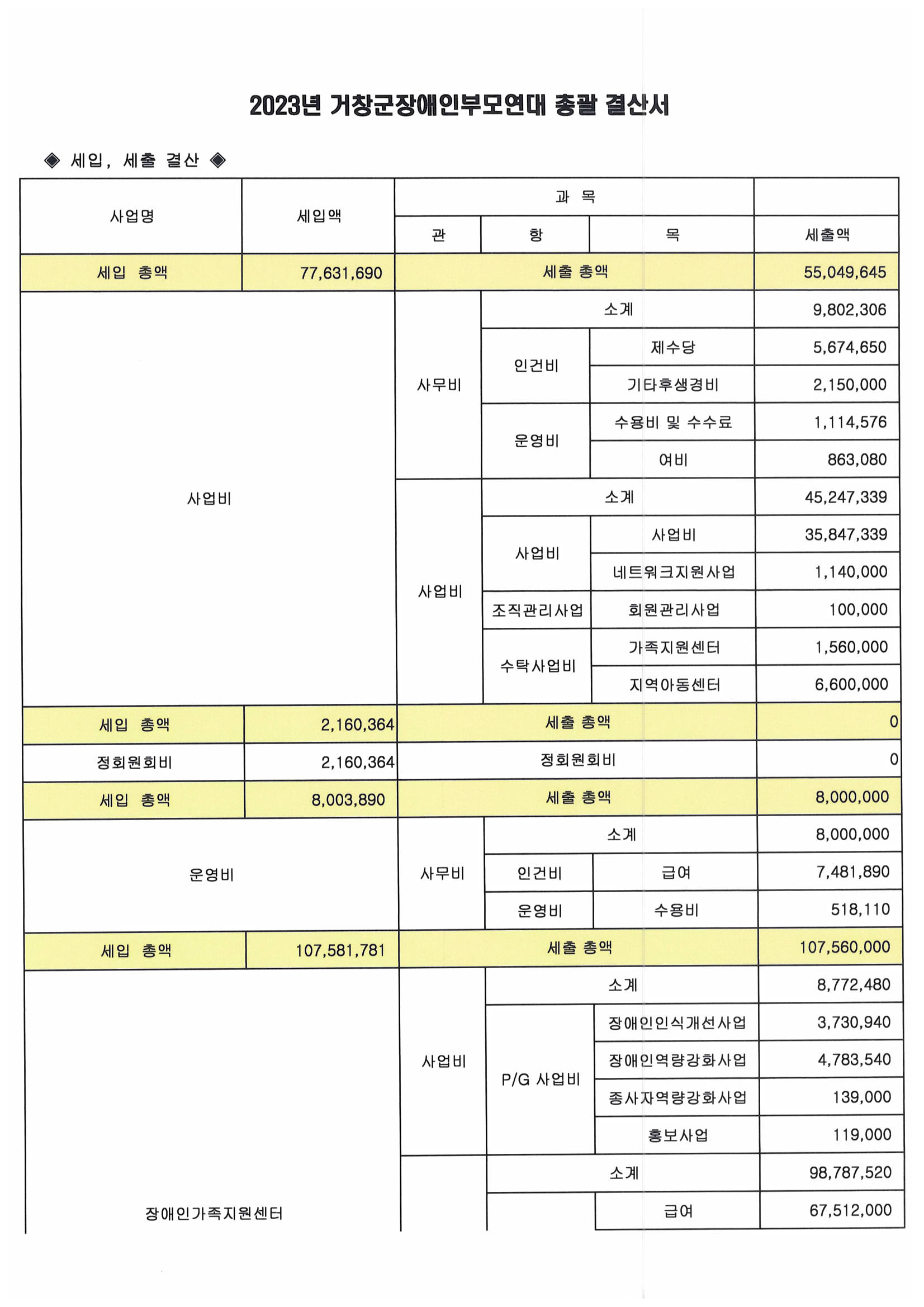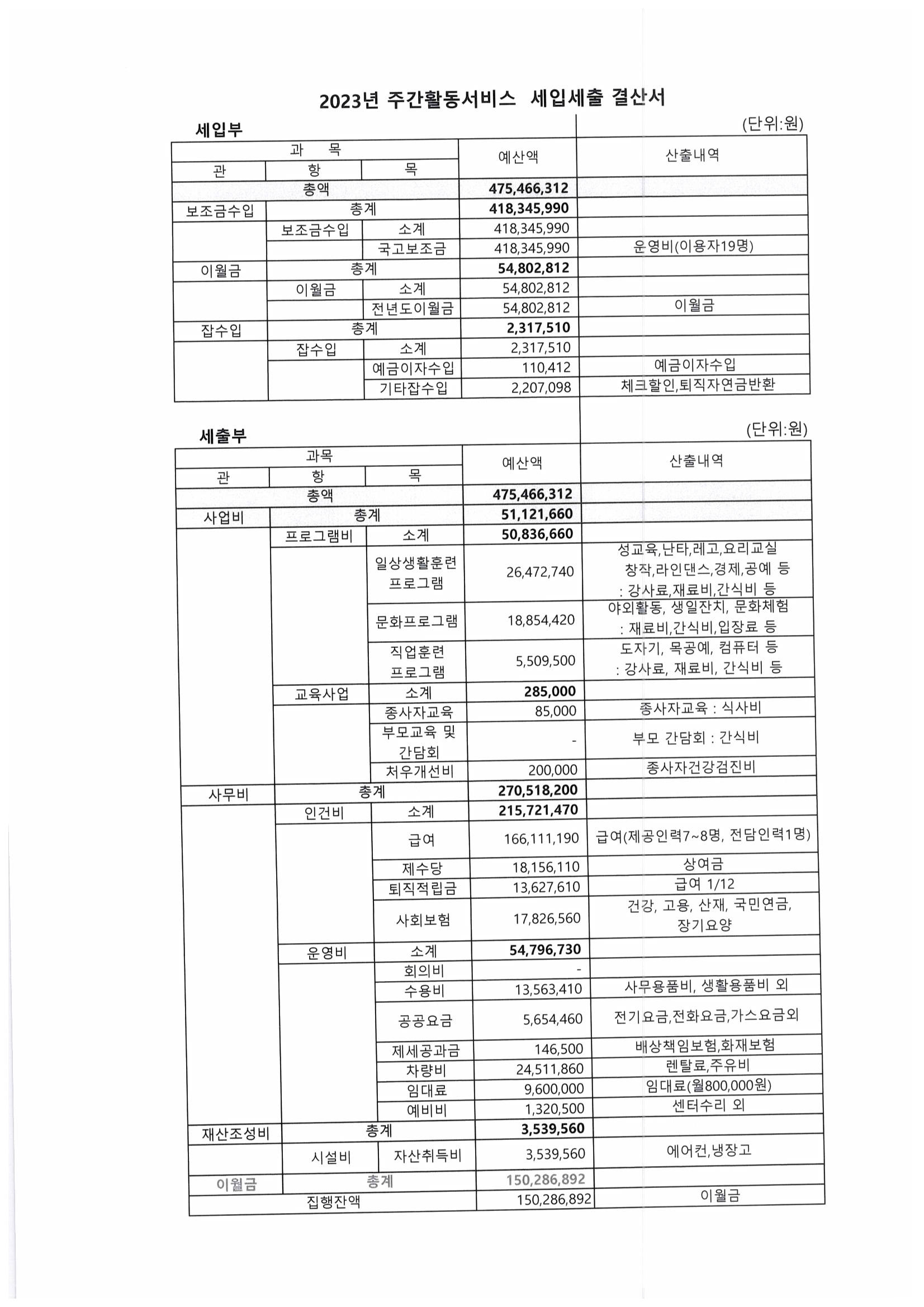 2023년 사단법인 경상남도장애인부모연대 거창군지회 세입·세출 결산서 및 2024년 세입·세출 예산서·예산총칙 작성자느티나무|작성시간25.05.15|조회수9 목록 댓글 0 글자크기 작게가 글자크기 크게가 다음검색 현재 게시글 추가 기능 열기 북마크 공유하기 신고 센터로 신고 댓글 댓글 0 댓글쓰기 답글쓰기 댓글 리스트