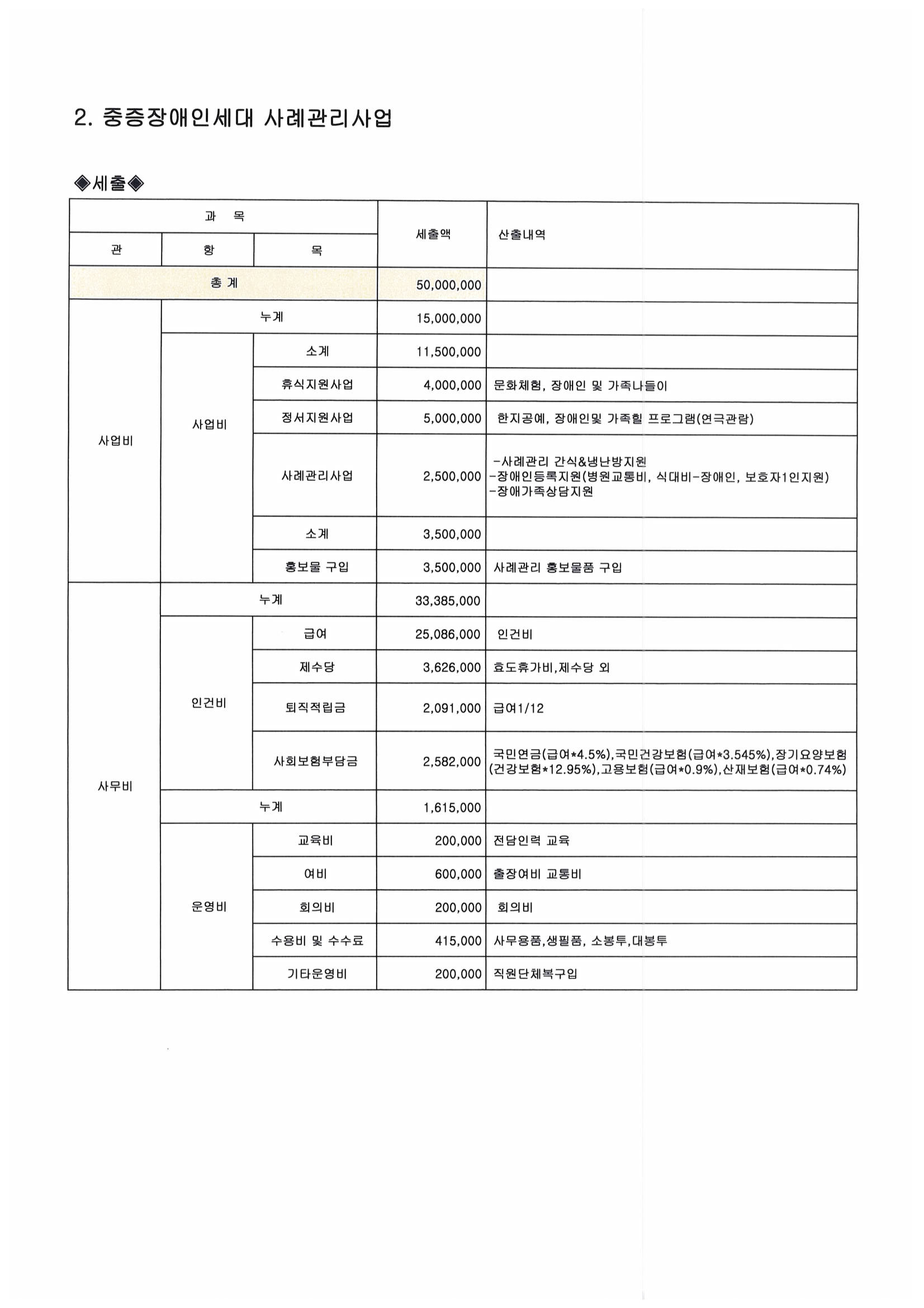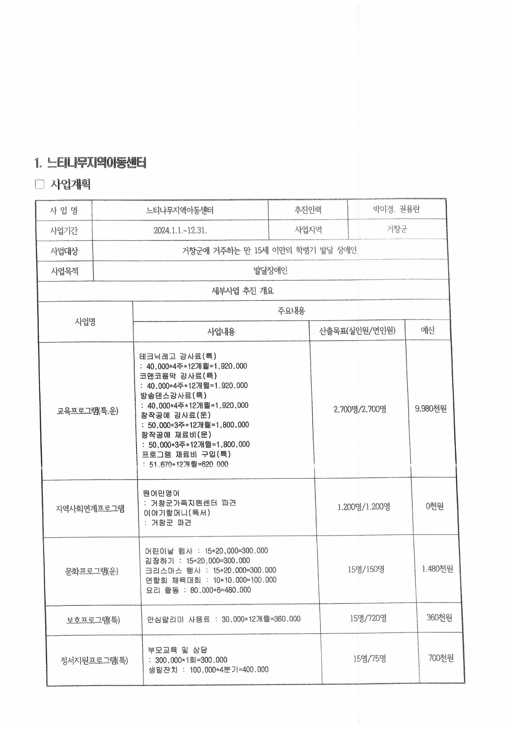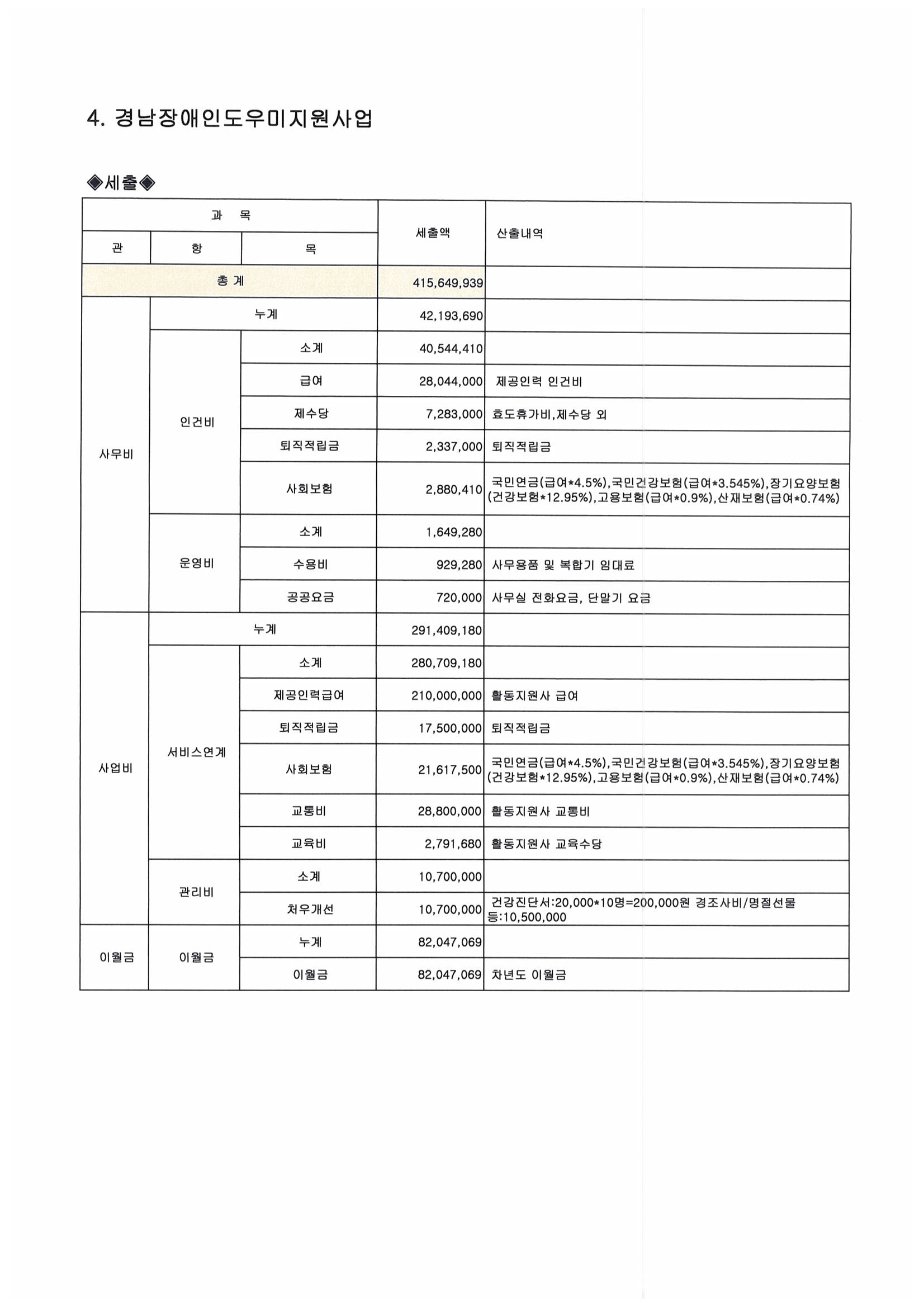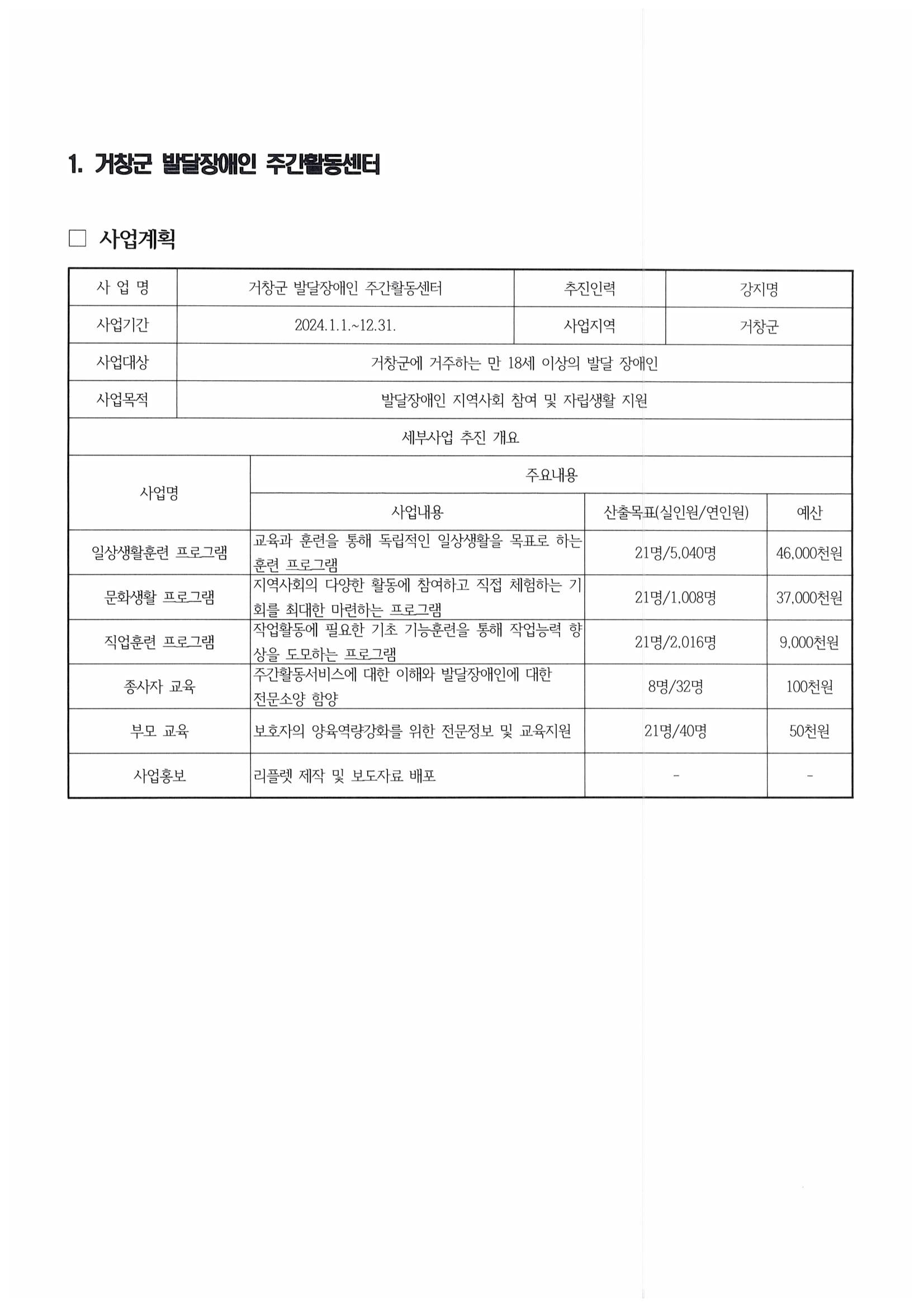 2023년 사단법인 경상남도장애인부모연대 거창군지회 세입·세출 결산서 및 2024년 세입·세출 예산서·예산총칙 작성자느티나무|작성시간25.05.15|조회수9 목록 댓글 0 글자크기 작게가 글자크기 크게가 다음검색 현재 게시글 추가 기능 열기 북마크 공유하기 신고 센터로 신고 댓글 댓글 0 댓글쓰기 답글쓰기 댓글 리스트