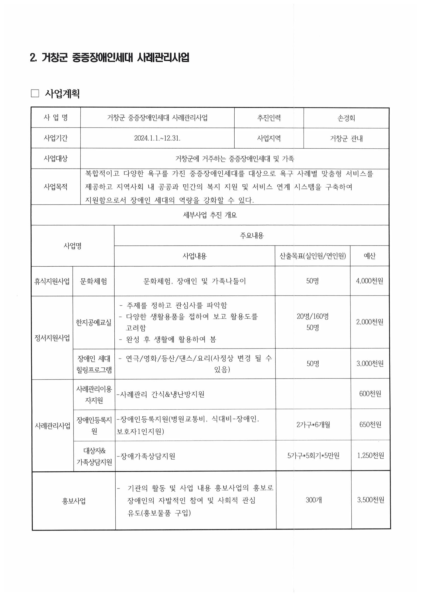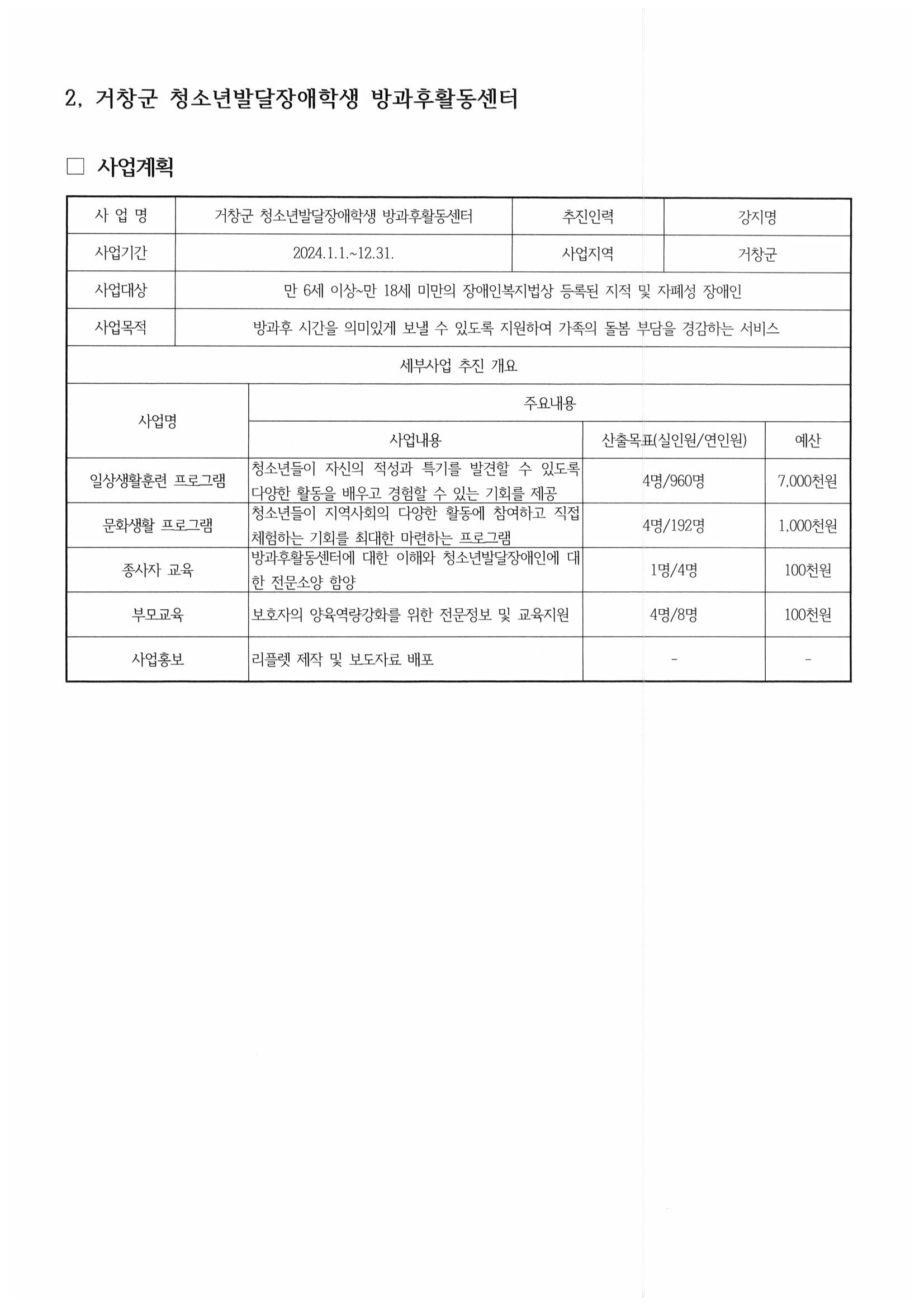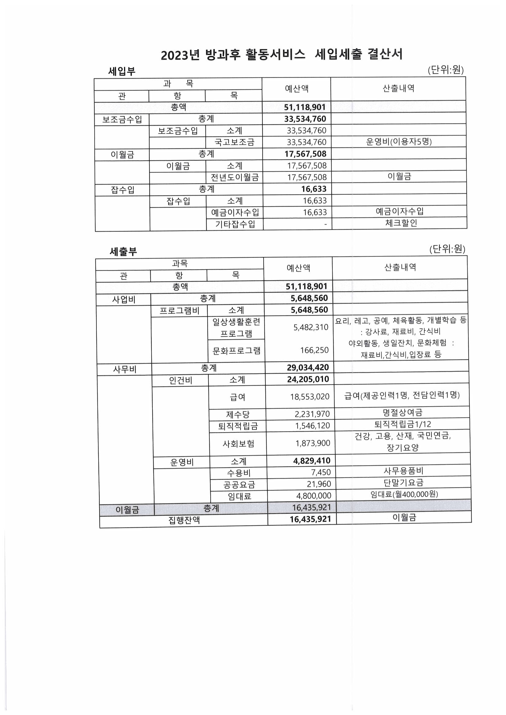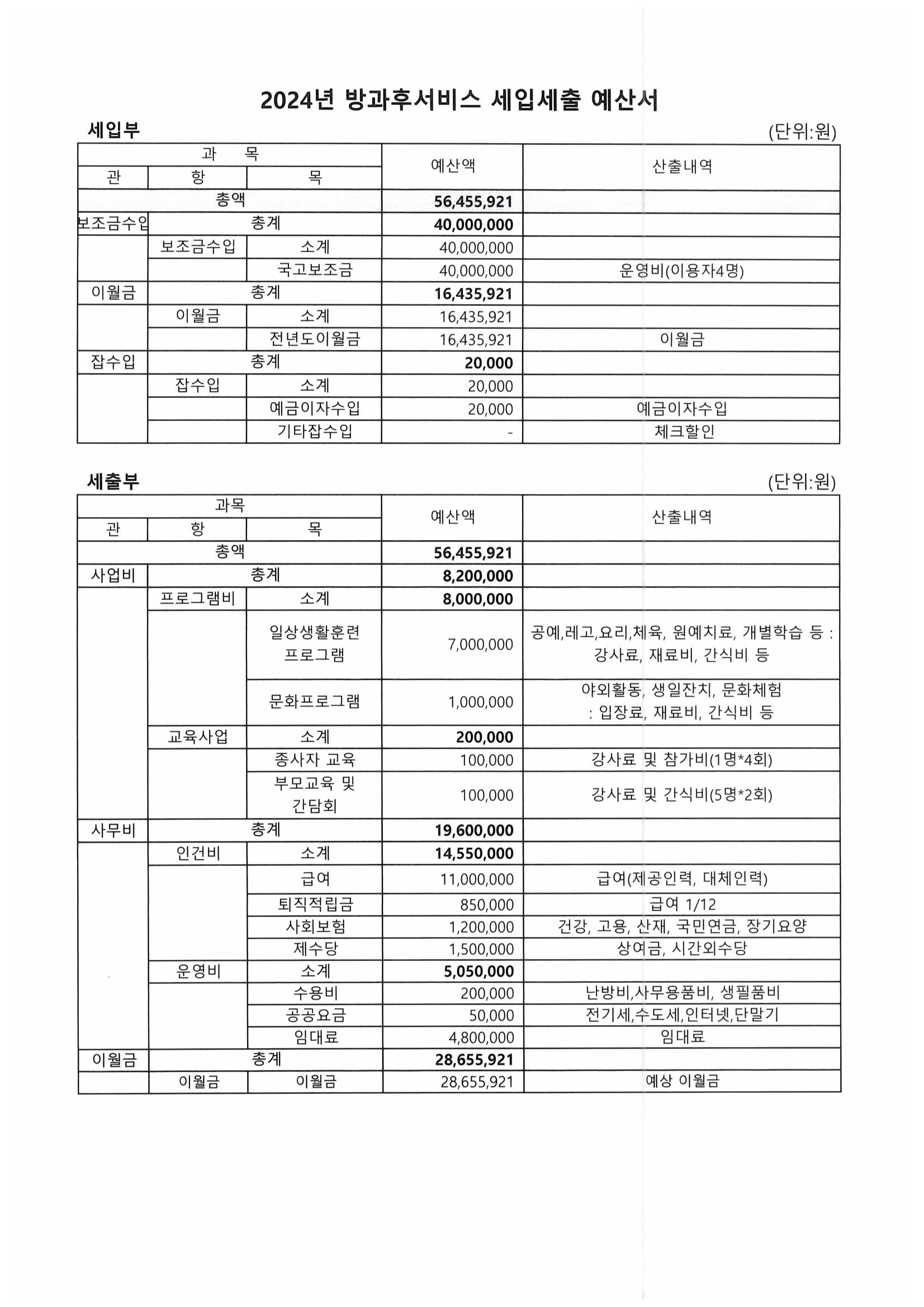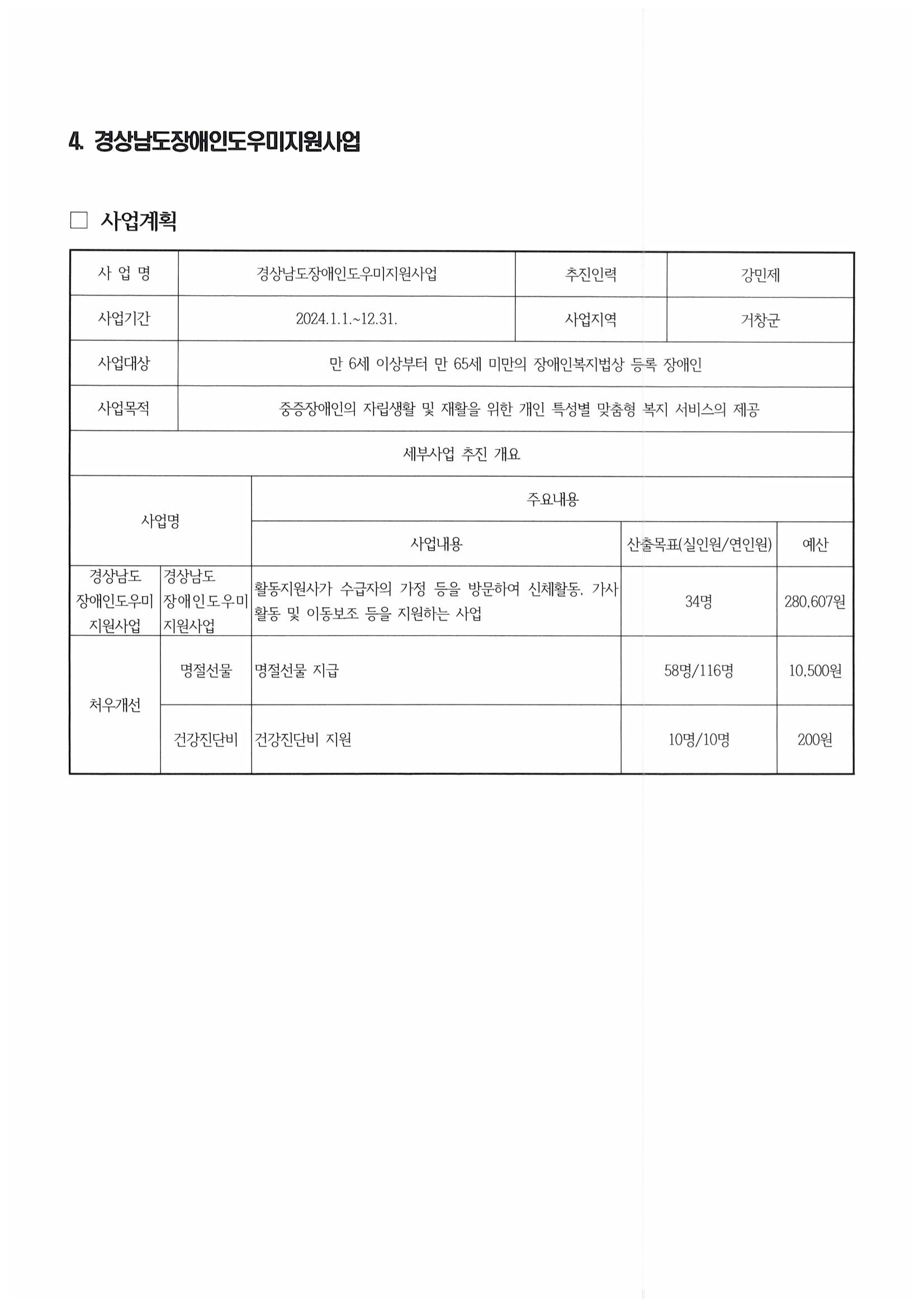 2023년 사단법인 경상남도장애인부모연대 거창군지회 세입·세출 결산서 및 2024년 세입·세출 예산서·예산총칙 작성자느티나무|작성시간25.05.15|조회수9 목록 댓글 0 글자크기 작게가 글자크기 크게가 다음검색 현재 게시글 추가 기능 열기 북마크 공유하기 신고 센터로 신고 댓글 댓글 0 댓글쓰기 답글쓰기 댓글 리스트