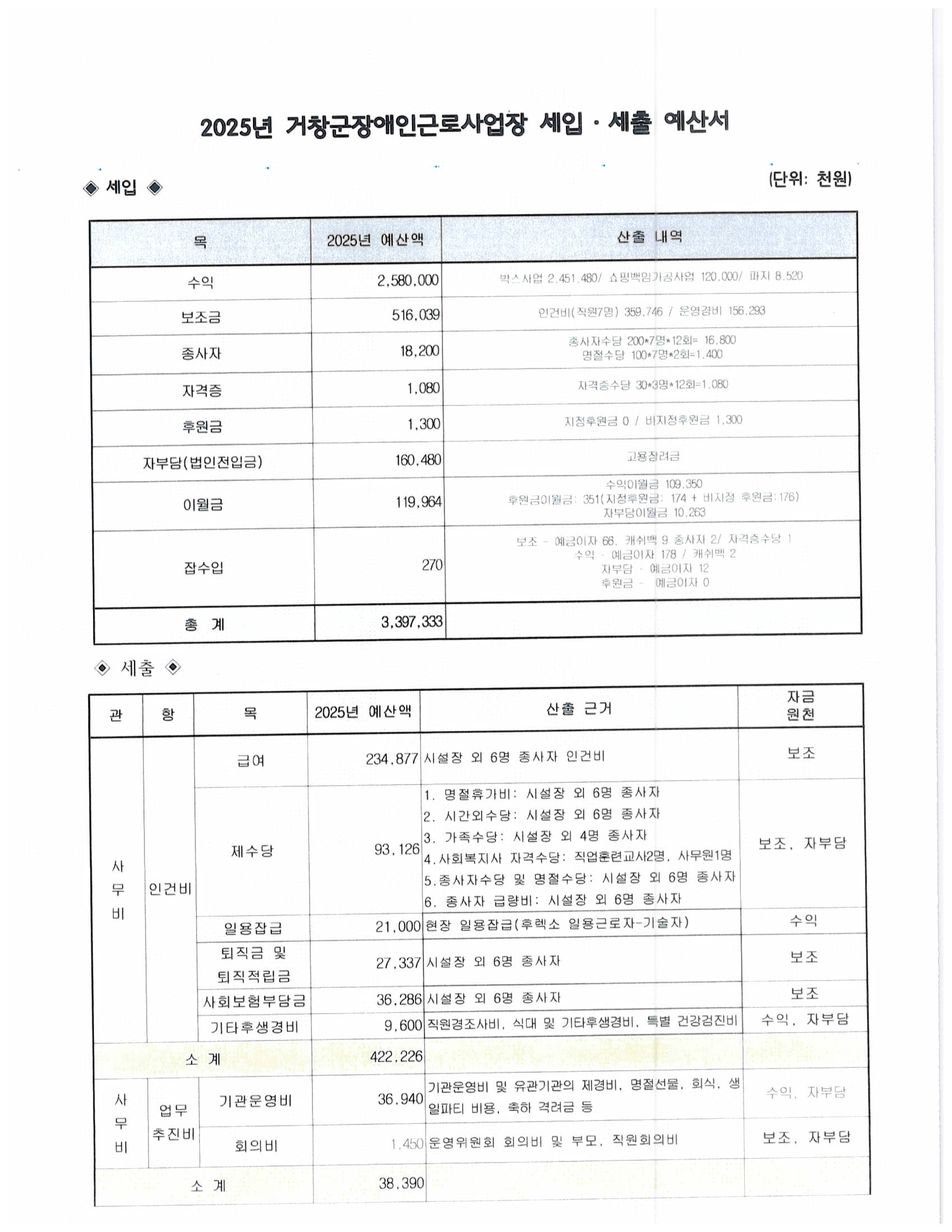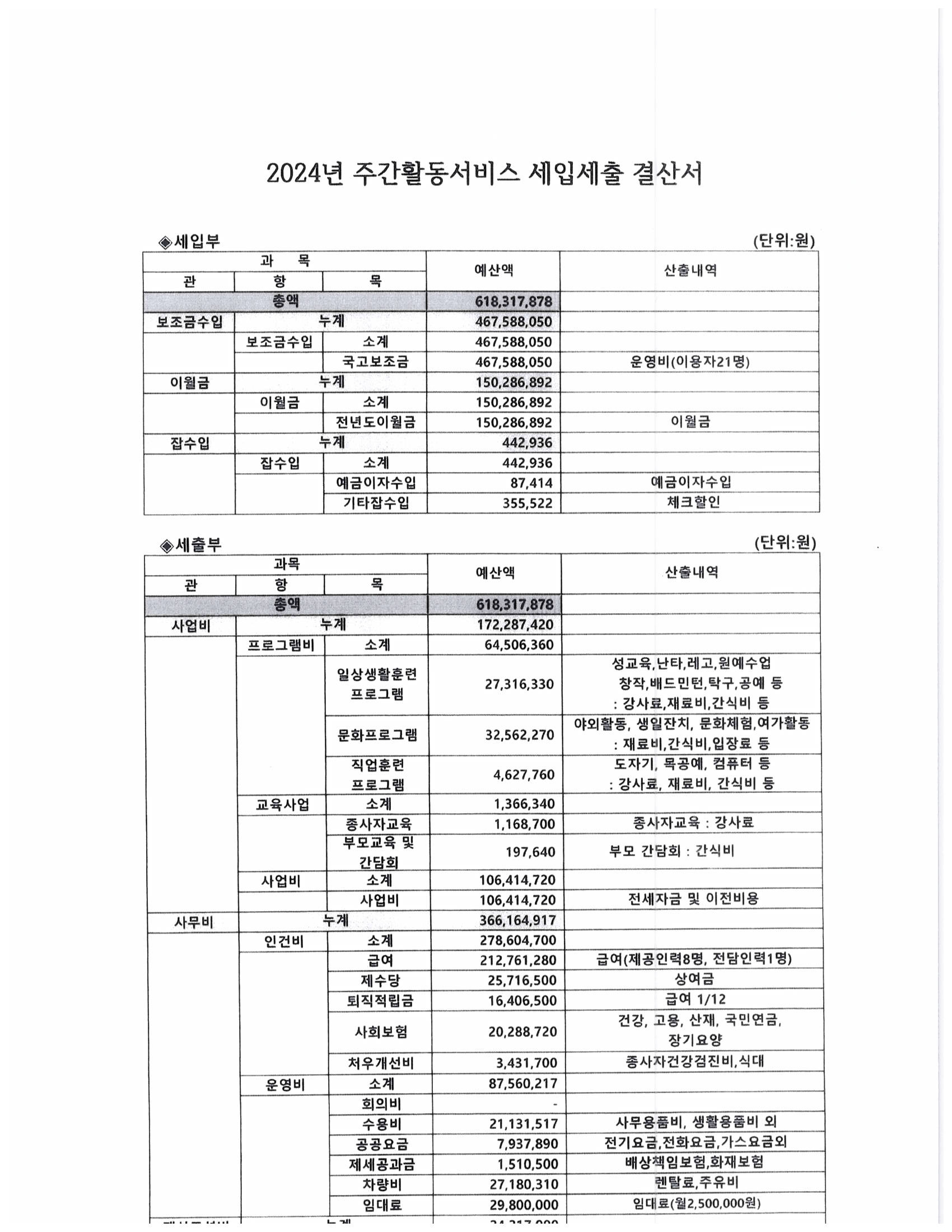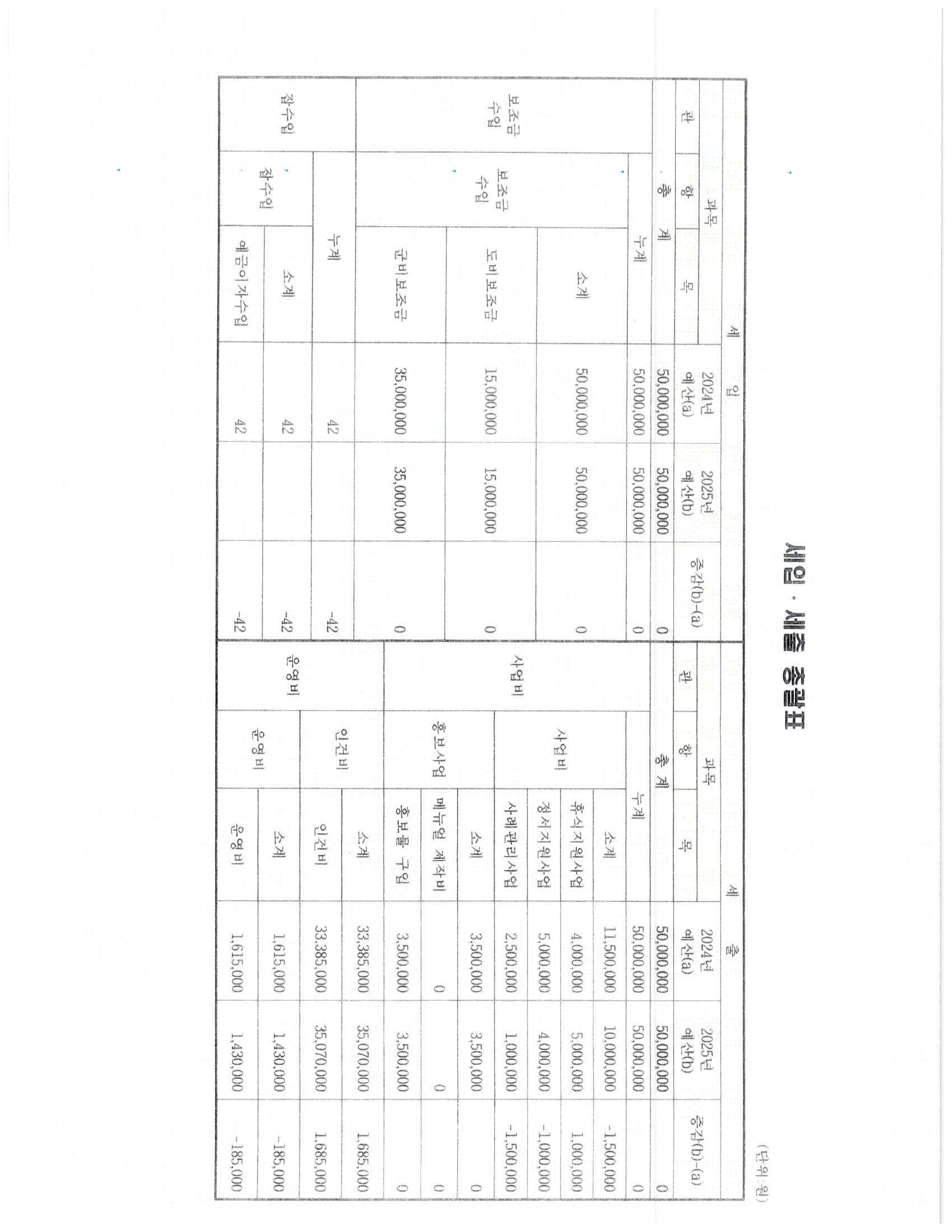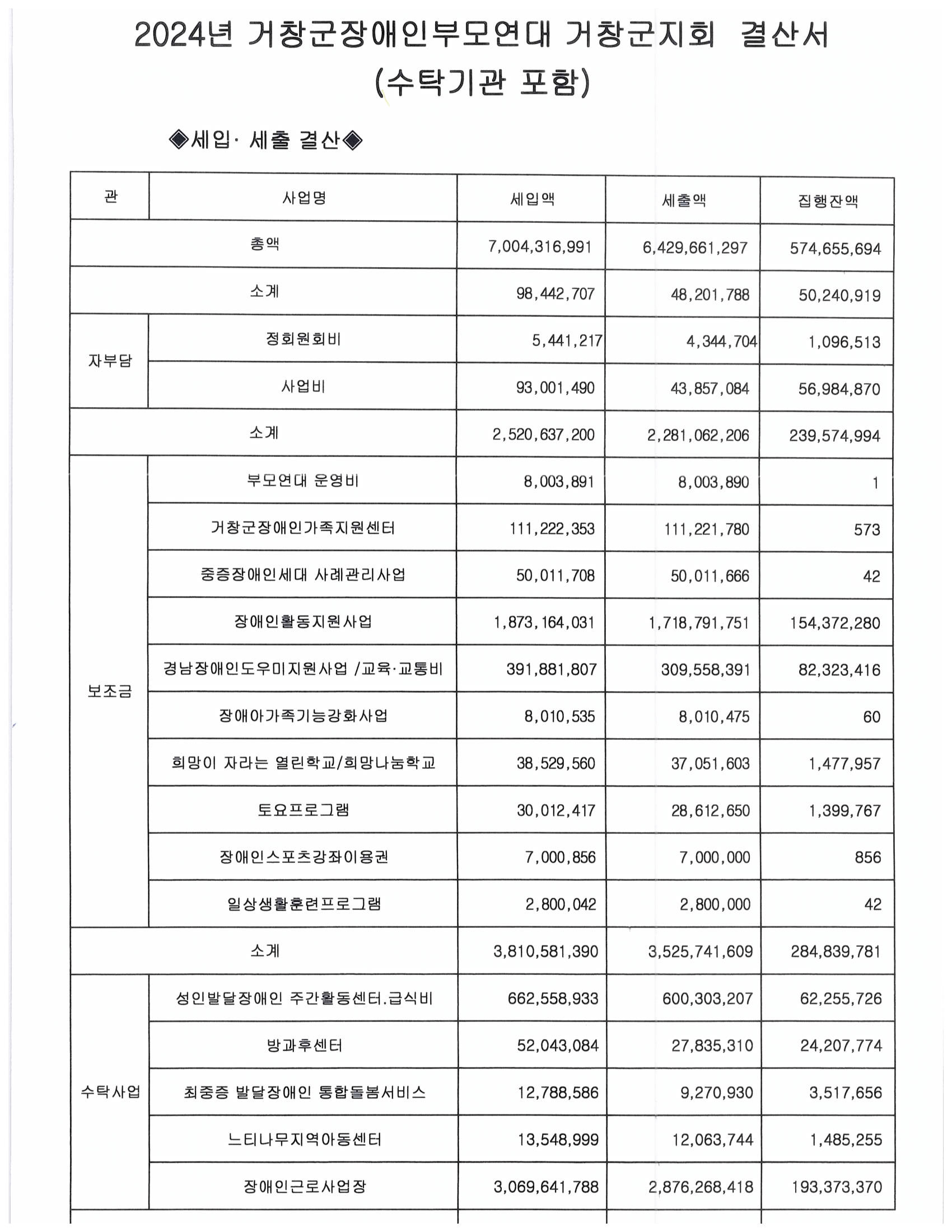 2024년 사단법인 경상남도장애인부모연대 거창군지회 세입·세출 결산서 및 2025년 세입·세출 예산서·예산총칙 작성자느티나무|작성시간25.05.15|조회수27 목록 댓글 0 글자크기 작게가 글자크기 크게가 다음검색 현재 게시글 추가 기능 열기 북마크 공유하기 신고 센터로 신고 댓글 댓글 0 댓글쓰기 답글쓰기 댓글 리스트