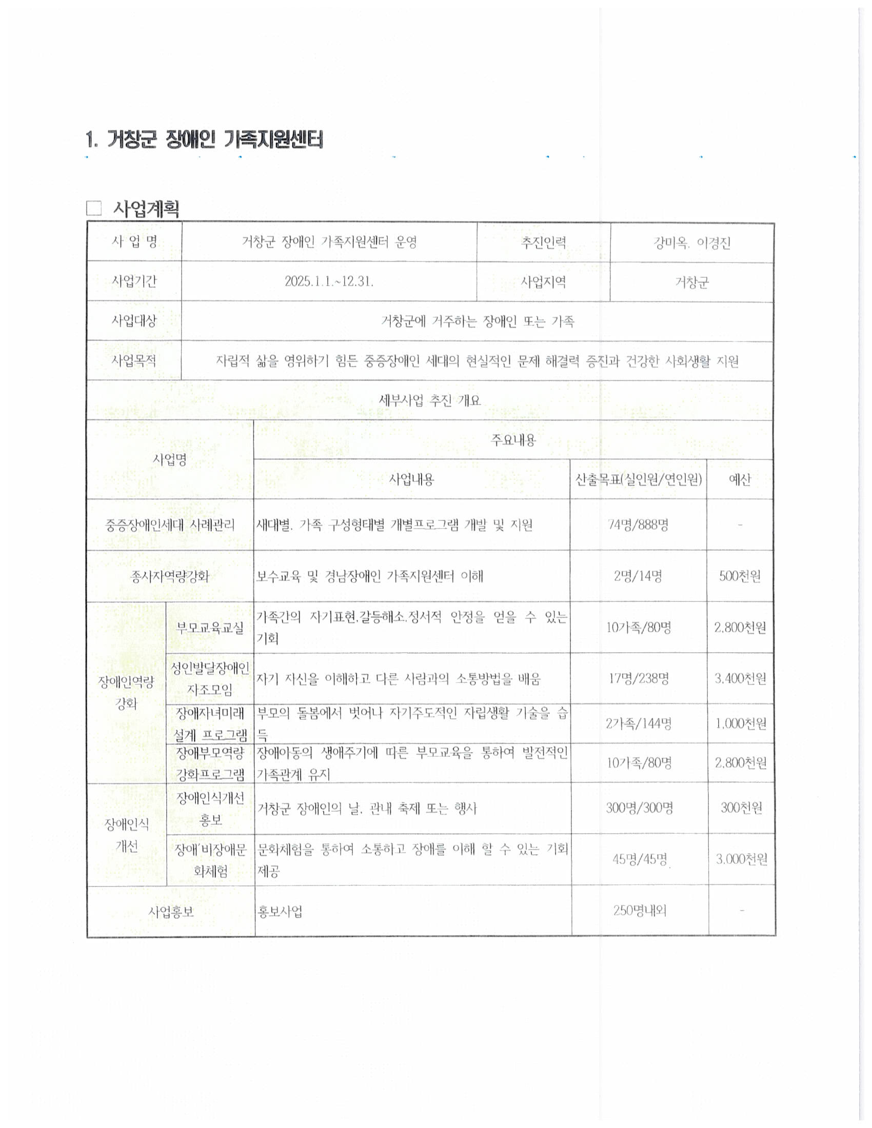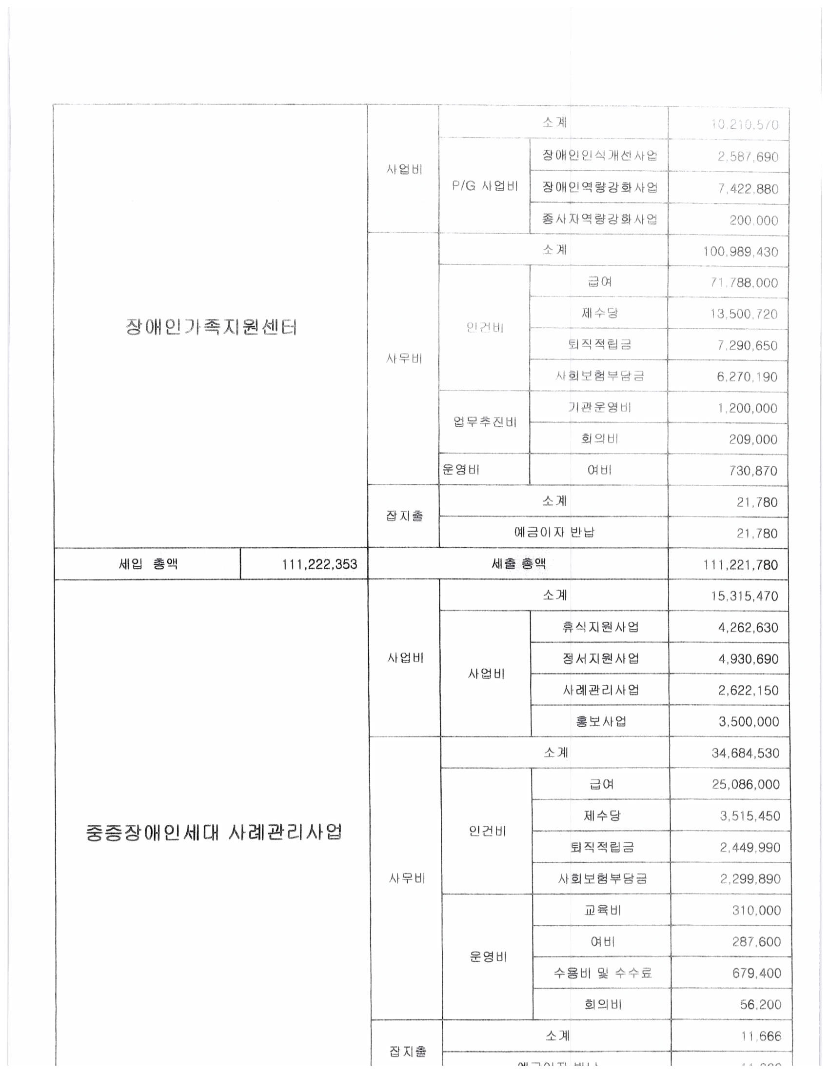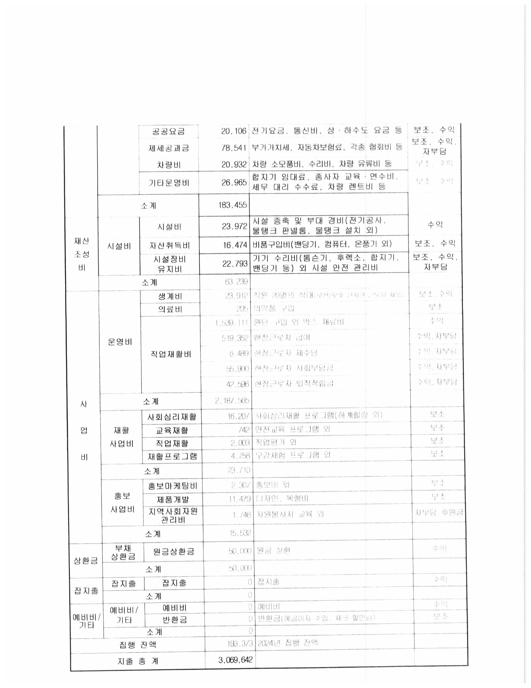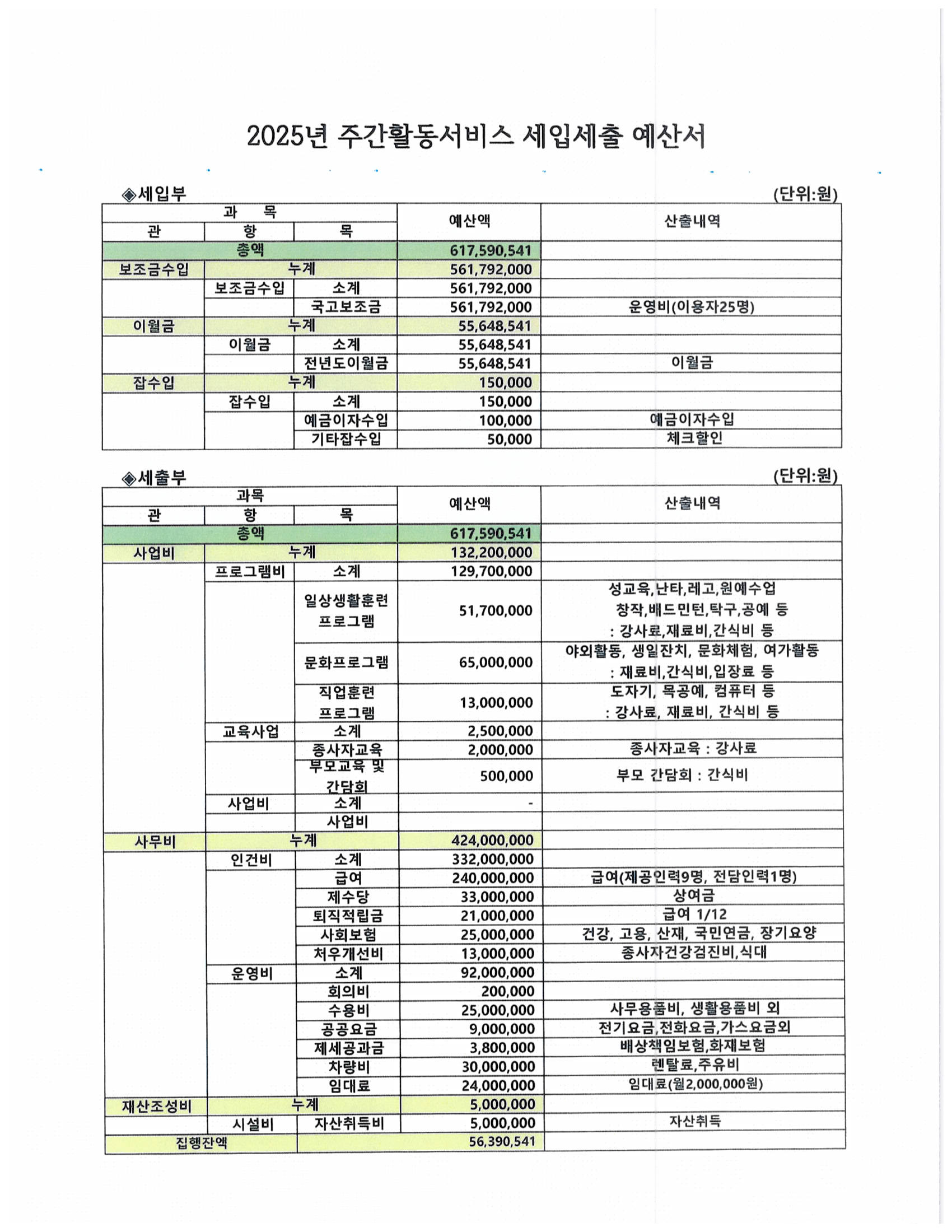 2024년 사단법인 경상남도장애인부모연대 거창군지회 세입·세출 결산서 및 2025년 세입·세출 예산서·예산총칙 작성자느티나무|작성시간25.05.15|조회수27 목록 댓글 0 글자크기 작게가 글자크기 크게가 다음검색 현재 게시글 추가 기능 열기 북마크 공유하기 신고 센터로 신고 댓글 댓글 0 댓글쓰기 답글쓰기 댓글 리스트