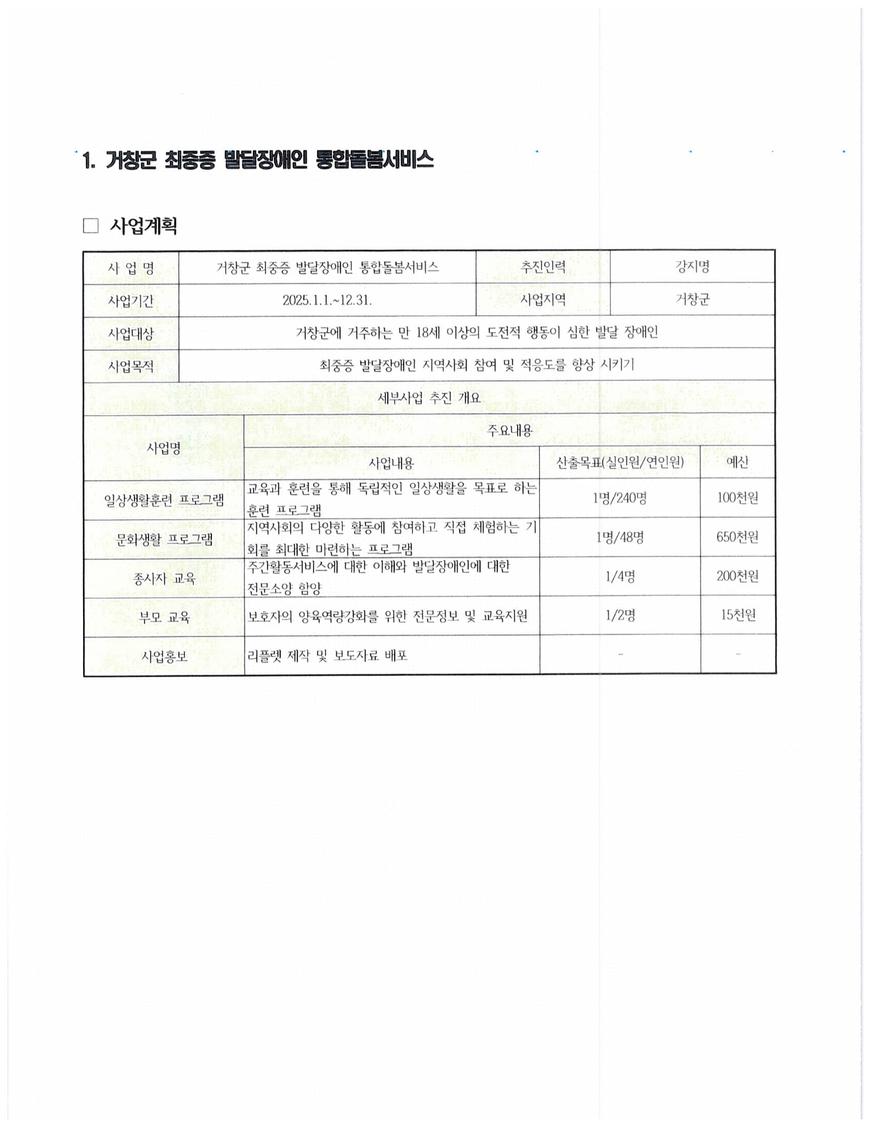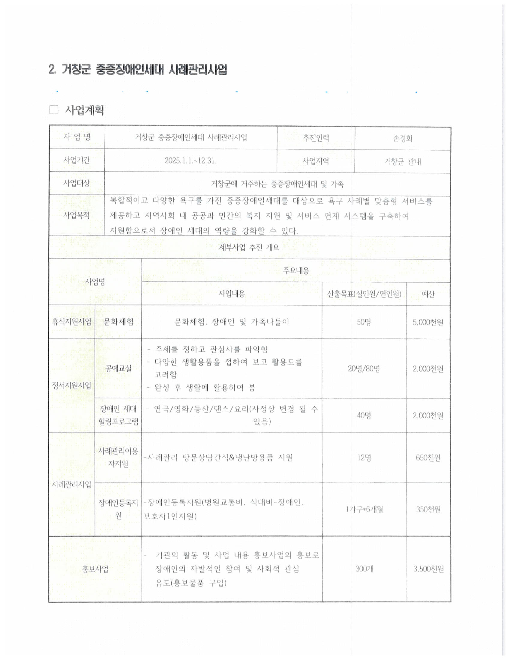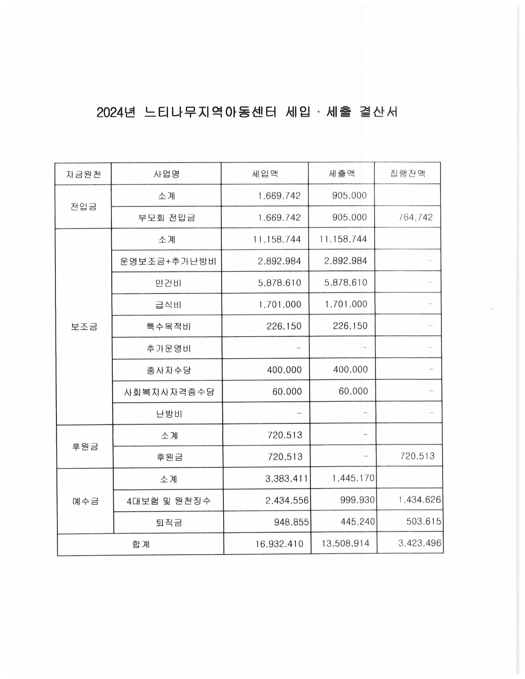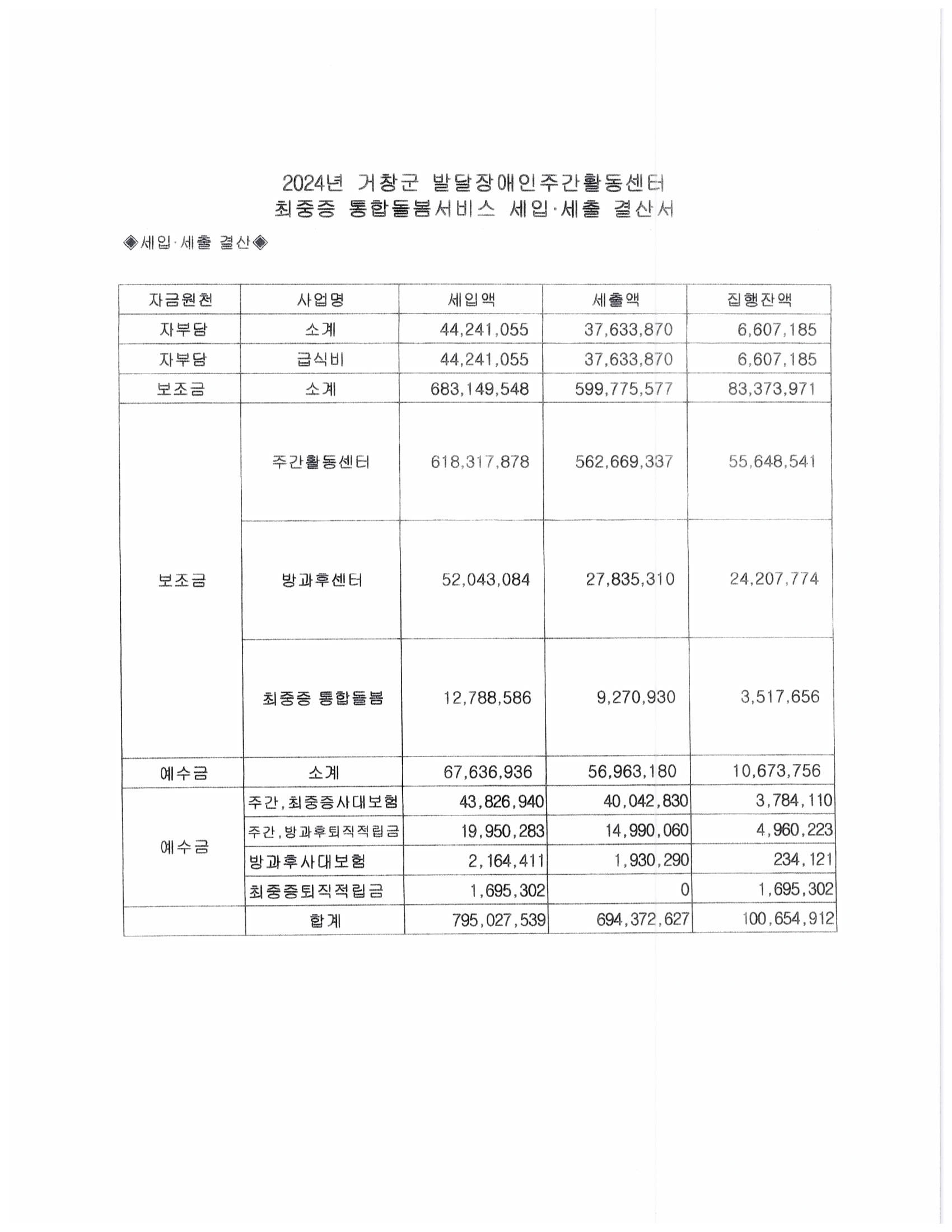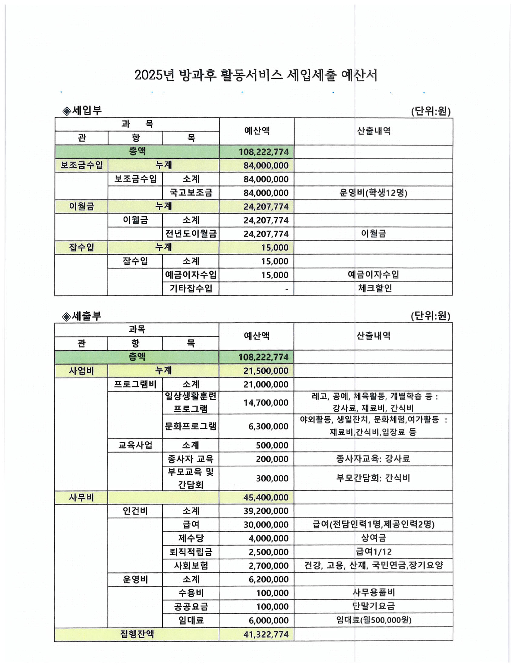 2024년 사단법인 경상남도장애인부모연대 거창군지회 세입·세출 결산서 및 2025년 세입·세출 예산서·예산총칙 작성자느티나무|작성시간25.05.15|조회수27 목록 댓글 0 글자크기 작게가 글자크기 크게가 다음검색 현재 게시글 추가 기능 열기 북마크 공유하기 신고 센터로 신고 댓글 댓글 0 댓글쓰기 답글쓰기 댓글 리스트