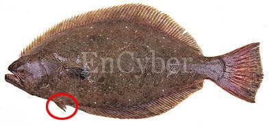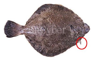 도다리(빨간 원형 부분이 가슴지느러미 입니다.)