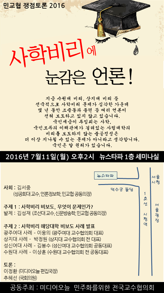 [토론회] 사학비리에 눈감은 언론 작성자상생21|작성시간16.07.03|조회수269 목록 댓글 1 글자크기 작게가 글자크기 크게가 여러 대학이 참여하는 토론회가 다음주초에 열립니다~ 다음검색 현재 게시글 추가 기능 열기 북마크 신고 센터로 신고 댓글 댓글 1 댓글쓰기 답글쓰기 댓글 리스트 작성자상생21 작성자 본인 여부 작성자 | 작성시간 16.07.03 우리 학교 사례는 이상훈 교수님이 발표하시기로 했습니다~ 댓글 전체보기