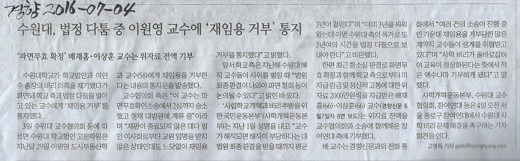 이미 알고 있던 일인데 어쩐 일인지 경향에서 하루 일찍 보도를 하였네요..