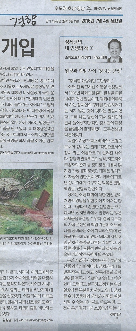 오늘 아침 경향신문에 제 기사가 났습니다.