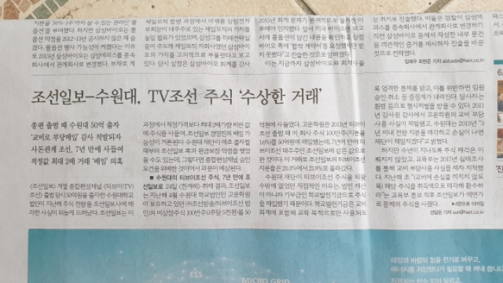 [한겨레] 조선일보, 수원대 주식 2배로 되사들여 배임 의혹 작성자상생21|작성시간19.04.25|조회수278 목록 댓글 0 글자크기 작게가 글자크기 크게가 https://news.v.daum.net/v/20190425050606340 다음검색 현재 게시글 추가 기능 열기 북마크 신고 센터로 신고 댓글 댓글 0 댓글쓰기 답글쓰기 댓글 리스트