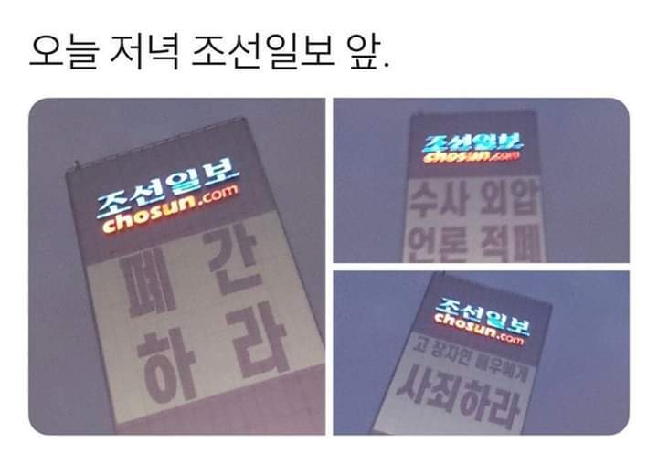 그저께 밤 조선일보 건물사옥에 찍힌 영상