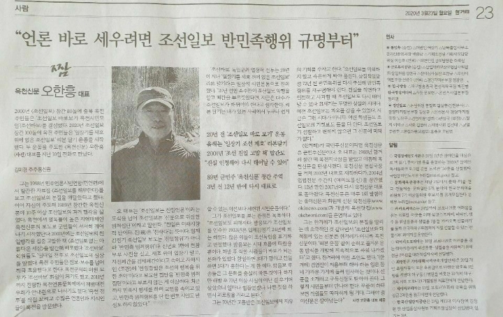 [한겨레] 조선일보 반민족행위 규명해야 작성자상생21|작성시간20.03.23|조회수437 목록 댓글 0 글자크기 작게가 글자크기 크게가 옥천신문사 오한흥 대표http://www.hani.co.kr/arti/society/media/933669.html 다음검색 현재 게시글 추가 기능 열기 북마크 공유하기 신고 센터로 신고 댓글 댓글 0 댓글쓰기 답글쓰기 댓글 리스트