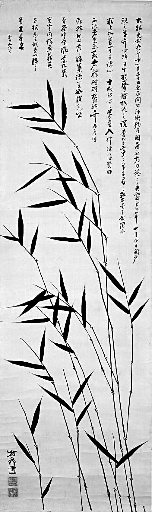 사라지지 않는 충의와 사라지지 않는 정기. 기운이 하나되어 대나무가 자라나. 단단하고 곧은 가지와 마디, 푸른 잎과 강직한 줄기는 충정공의 절개를 보는 듯 하다. 이런 기풍에 세상사람 모두가 같은 마음이니, 결기에 우리 세상이 지켜질 것이다. 이를 그림으로 그려 전하니, 이름이여, 만고에 빛나라.