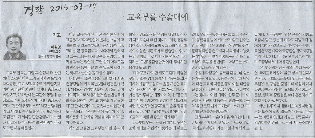 [경향신문2016-03-17] 교육부를 수술대에 작성자상생21|작성시간16.03.17|조회수188 목록 댓글 0 글자크기 작게가 글자크기 크게가 다음검색 현재 게시글 추가 기능 열기 북마크 공유하기 신고 센터로 신고 댓글 댓글 0 댓글쓰기 댓글 리스트