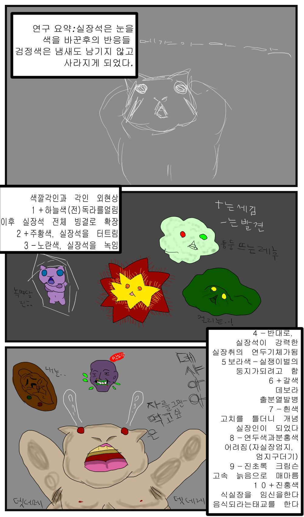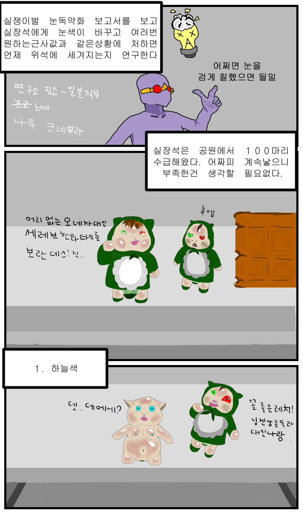 실눈실(실장석 눈색깔 실험) 작성자uzida|작성시간26.02.27|조회수767 목록 댓글 2 글자크기 작게가 글자크기 크게가 실장-빙수를 먹고싶다면 눈깔을 파라파파파란색으로 물들여보게! 똥니잉겐! 다음검색 현재 게시글 추가 기능 열기 북마크 공유하기 신고 센터로 신고 댓글 댓글 2 댓글쓰기 답글쓰기 댓글 리스트 작성자노아 스텐버드 | 작성시간 26.02.28 눈 색으로 상태를 종족단위로 새겨넣다니 재밌는 설정들이네요 잘 보았습니다 작성자펏이당 | 작성시간 26.03.19 오랜만에 참피 보러왔는데 만화 잘 보고갑니당 ㅎㅎ 댓글 전체보기