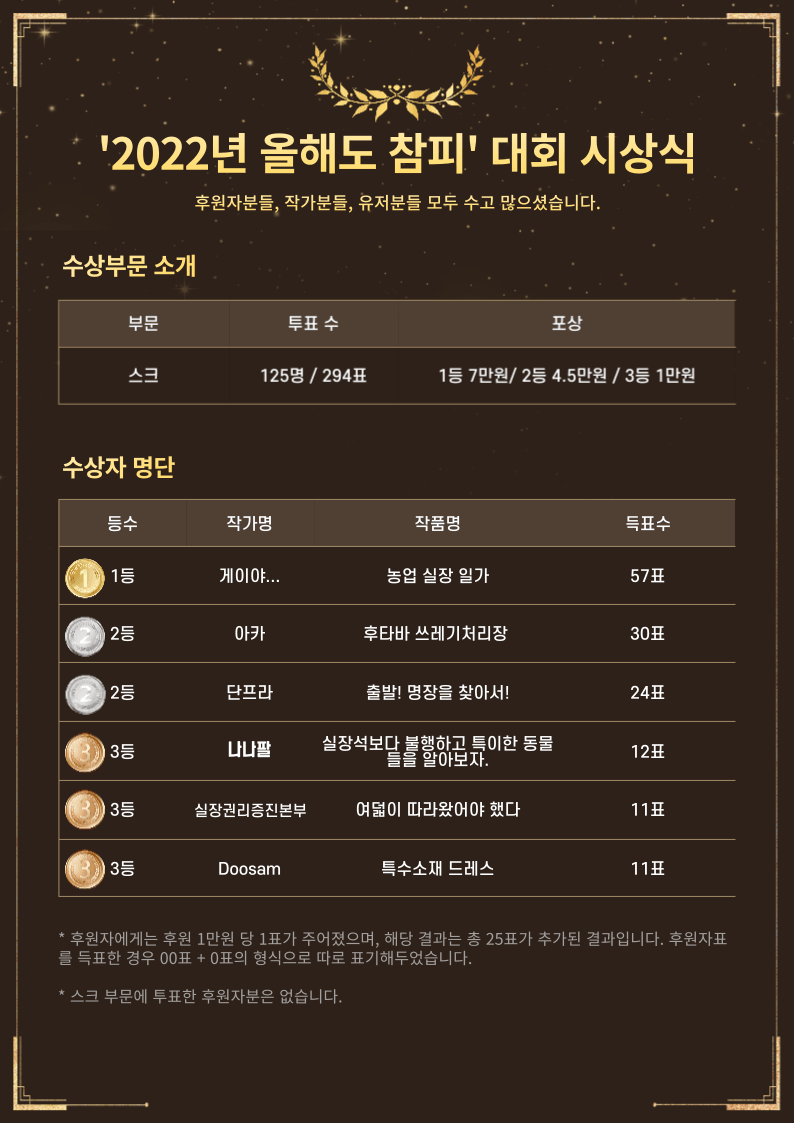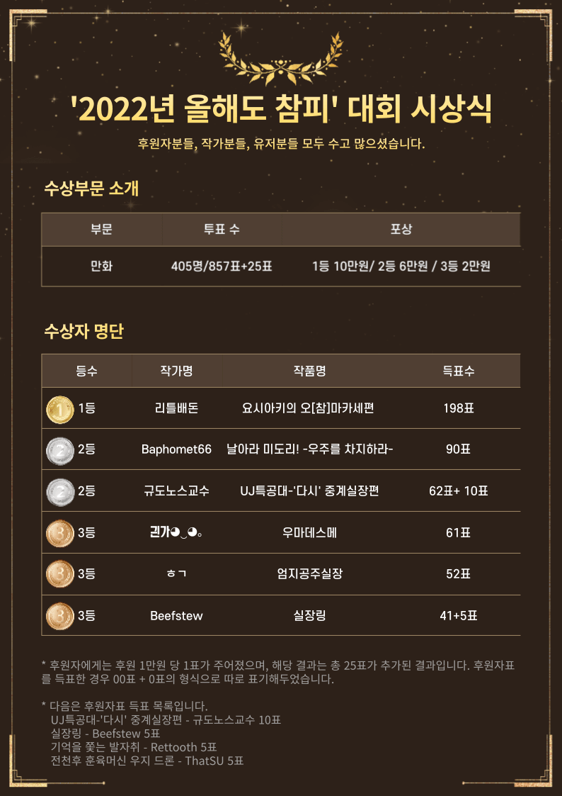 이번 2022 참피 창작대회 '올해도 참피' 시상식 여기서 마치도록 하겠습니다.