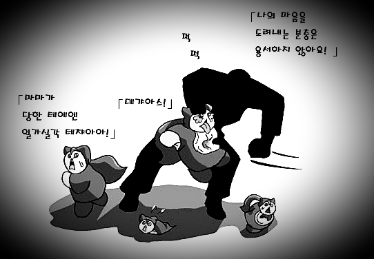 핑크색 실장복을 입은 사육실장의 가녀린 머리카락이 뜯혀졌다.