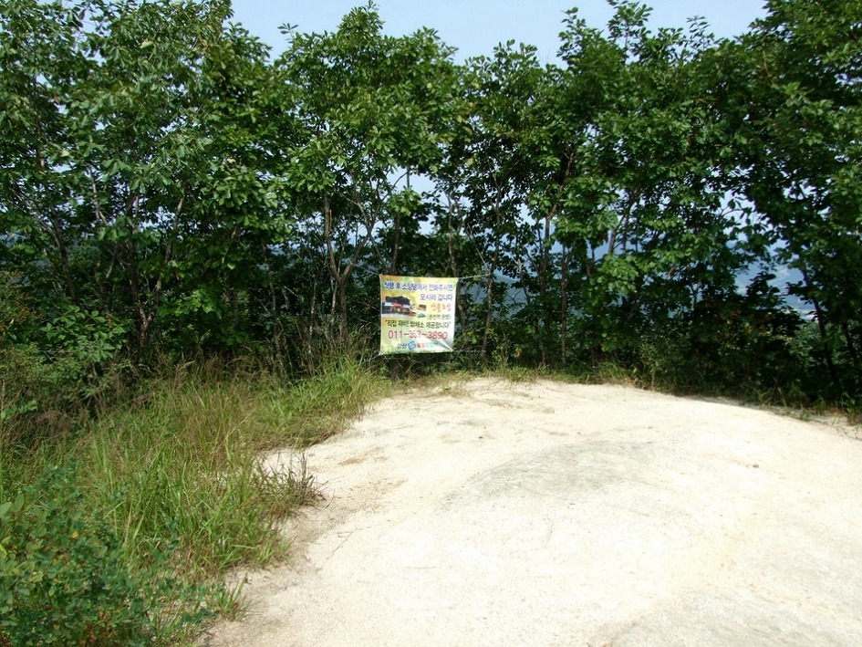 오봉산 정상방향으로 향하니 11:40 닭갈비집 광고 플래카드가 걸려있는 1봉정상에 도착후