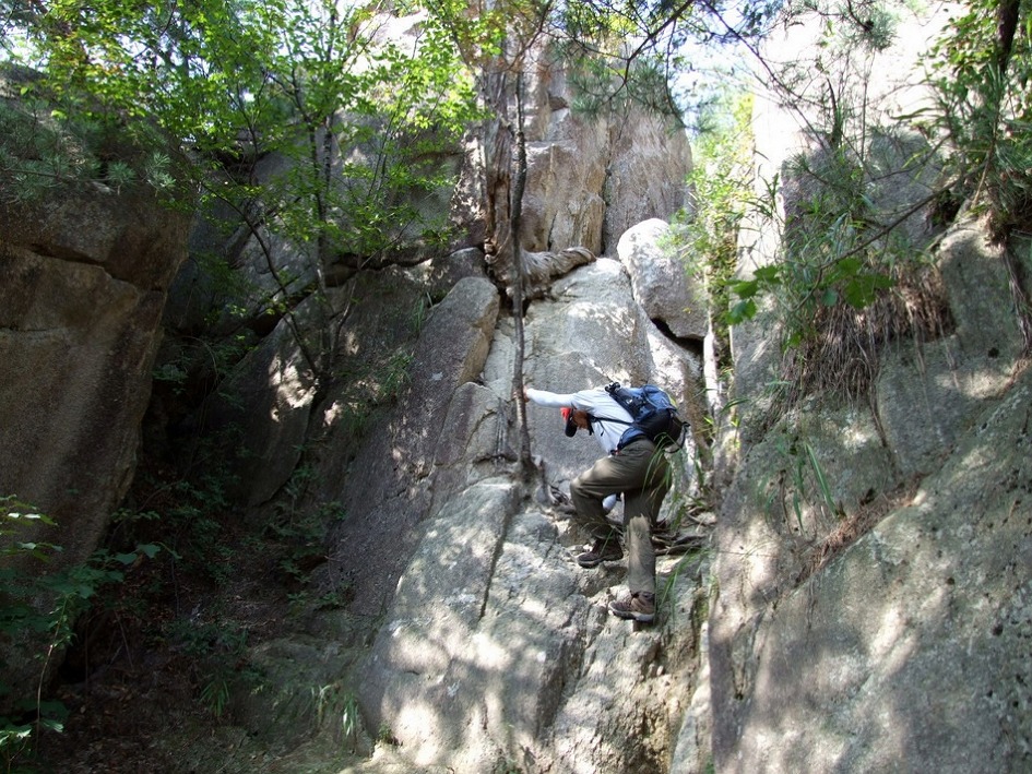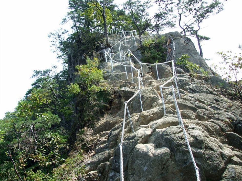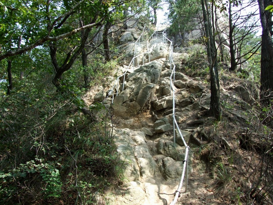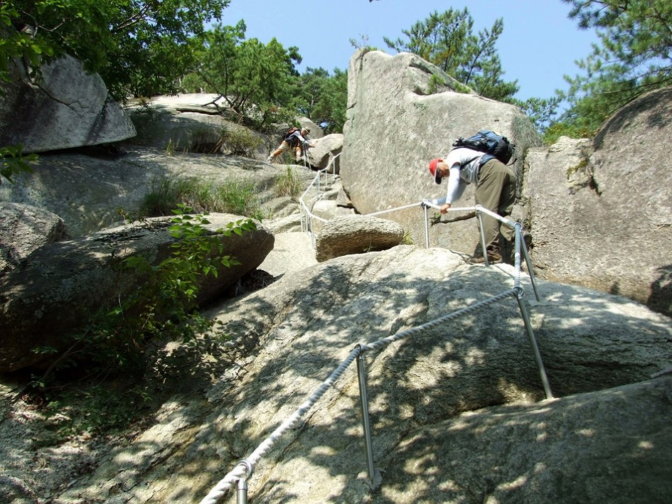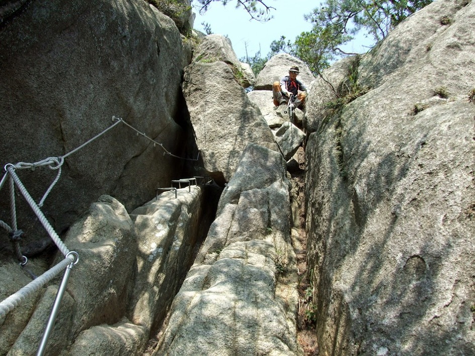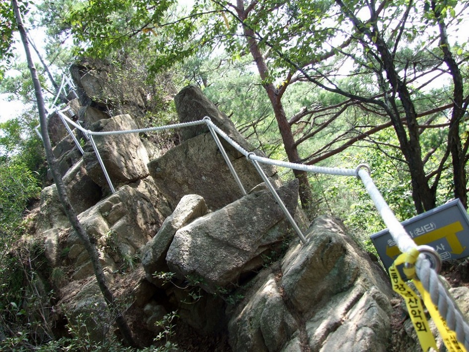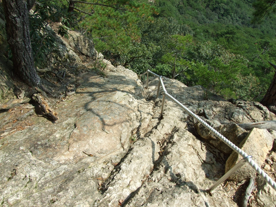 거의 직벽바위구간이 계속 연결되지만 다행히 밧줄이 있습니다