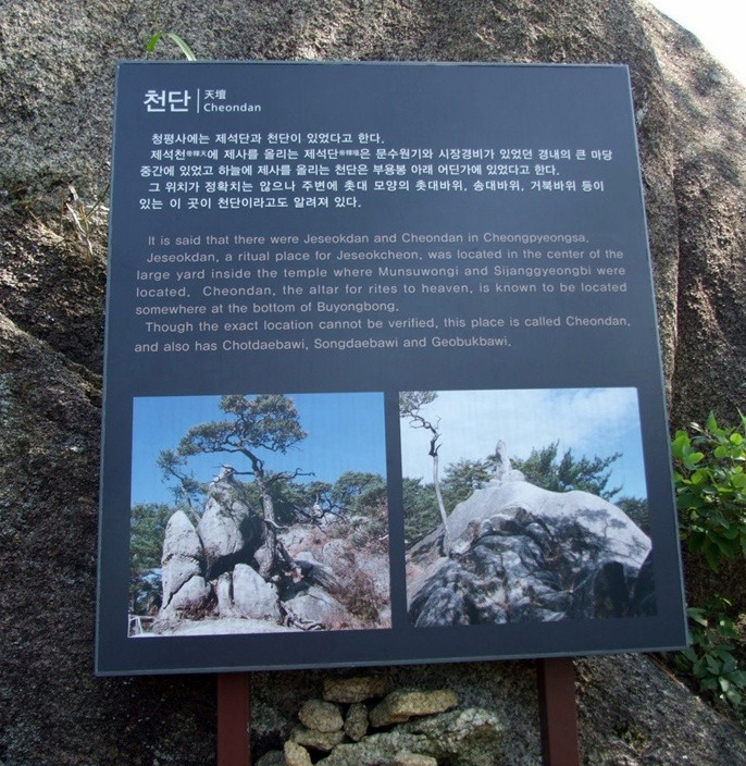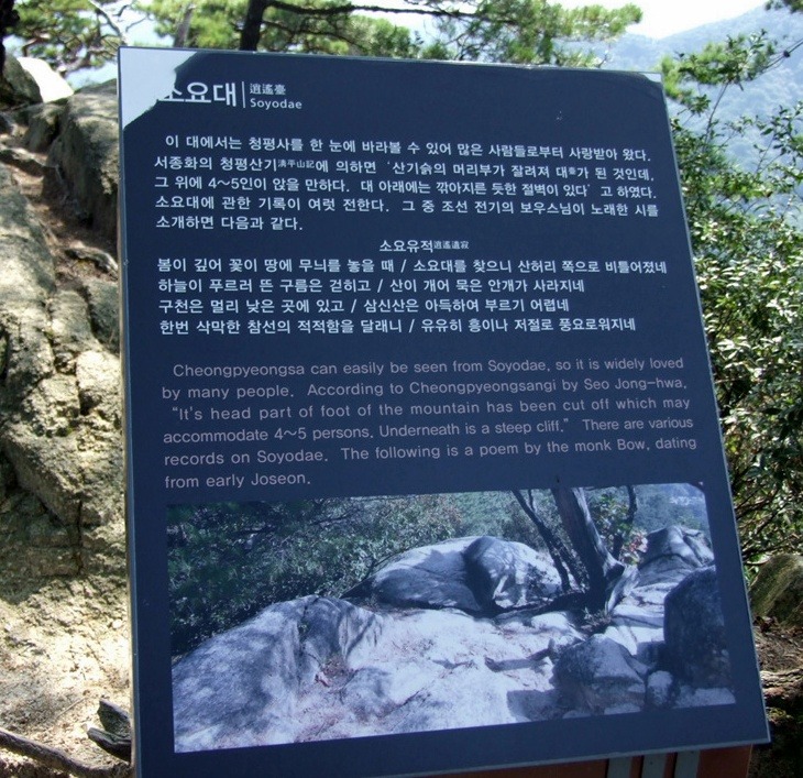 사진찍고 내려가니 13:56 천단 안내문과 촛대바위,거북바위등의 절경과 소양호를 바라보며