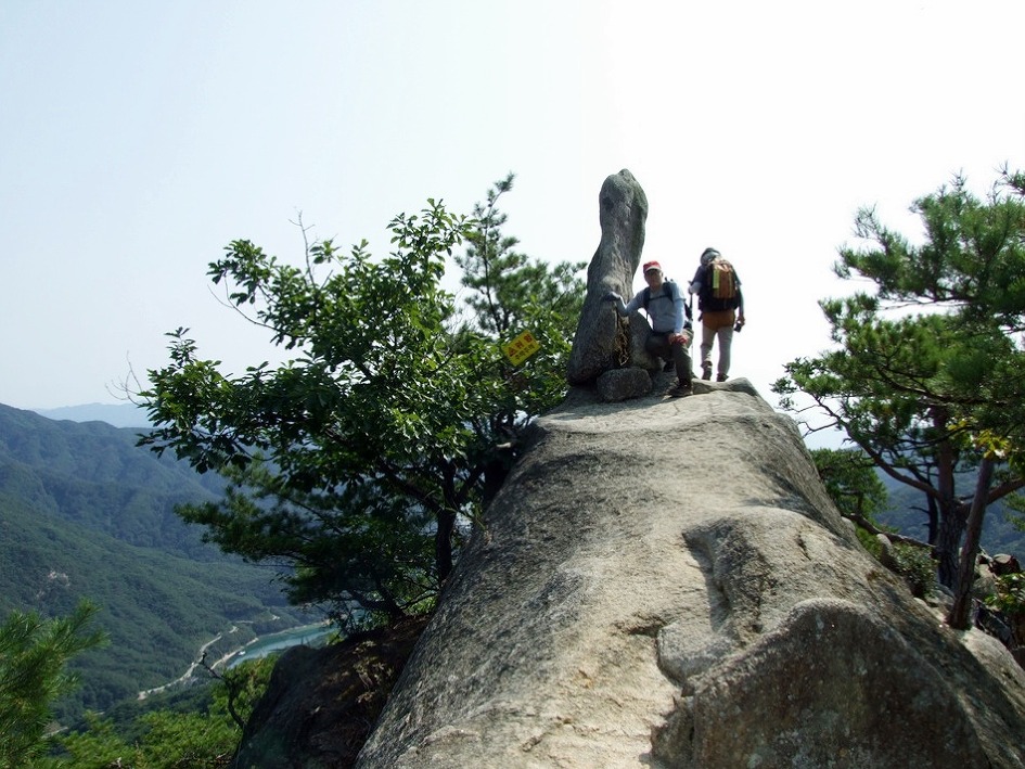 암봉임을 깨닫게하고 멋진조망과 짜릿한 바윗길을 조심하며 천천히 내려오니 14:43 청평사