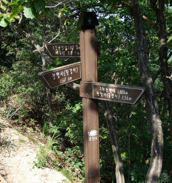 13:35 청평사 하산 갈림길 (오봉산1.4km,배후령 3.0km, 청평사 해탈문방향 1.6km,천단방향 1.5km)
