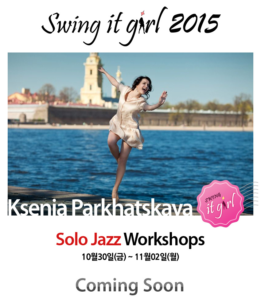 더 이상 리더들의 병풍이 되고 싶지 않은 It girl들을 위한, 국내 최초로 팔뤄들이 주인공인 행사 'Swing it Girl'입니다. 국민대 총장배 KOSC의 심사위원으로 참여하는 최고의 솔로 댄서 Ksenia(ㅋ세냐)가 행사 전후로 솔로재즈 및 스타일링 워크샵을 진행할 예정이니, 관심 있는 댄서들의 많은 참여 바랍니다.