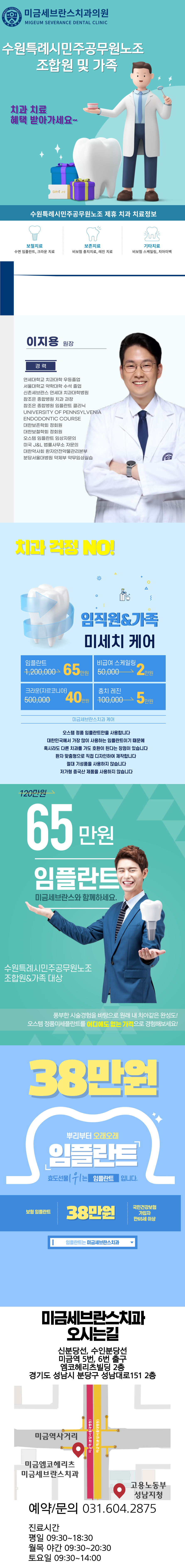 수원특례시민주공무원노조 협약업체 중 하나인 미금세브란스치과 우대혜택을 안내드립니다. 조합원 및 후원회원께서는 다음 내용을 참고하시어 이용하시기 바랍니다.
