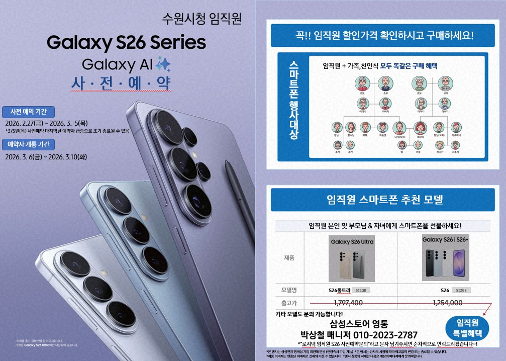 수원특례시민주공무원노조 협약업체 중 하나인 삼성스토어 영통점 우대혜택을 안내드립니다. 조합원 후원회원께서는 다음 내용을 참고하시어 이용하시기 바랍니다.