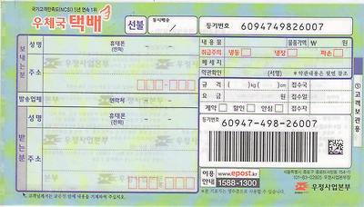 우체국택배의 경우 집하점코드는 '접수국'이라고 인쇄된 곳에 인쇄됩니다..