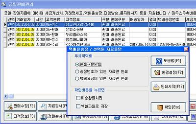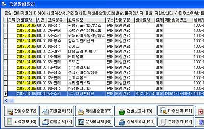 아래화면과 같이 화면에서 여러개의 자료를 선택하고 나서 [ 택배운송장 ]을 클릭하면