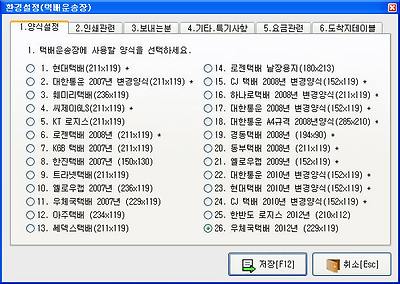 양식설정에서 2012년 변경된 우체국택배의 송장양식(26번)을 선택하면 됩니다.